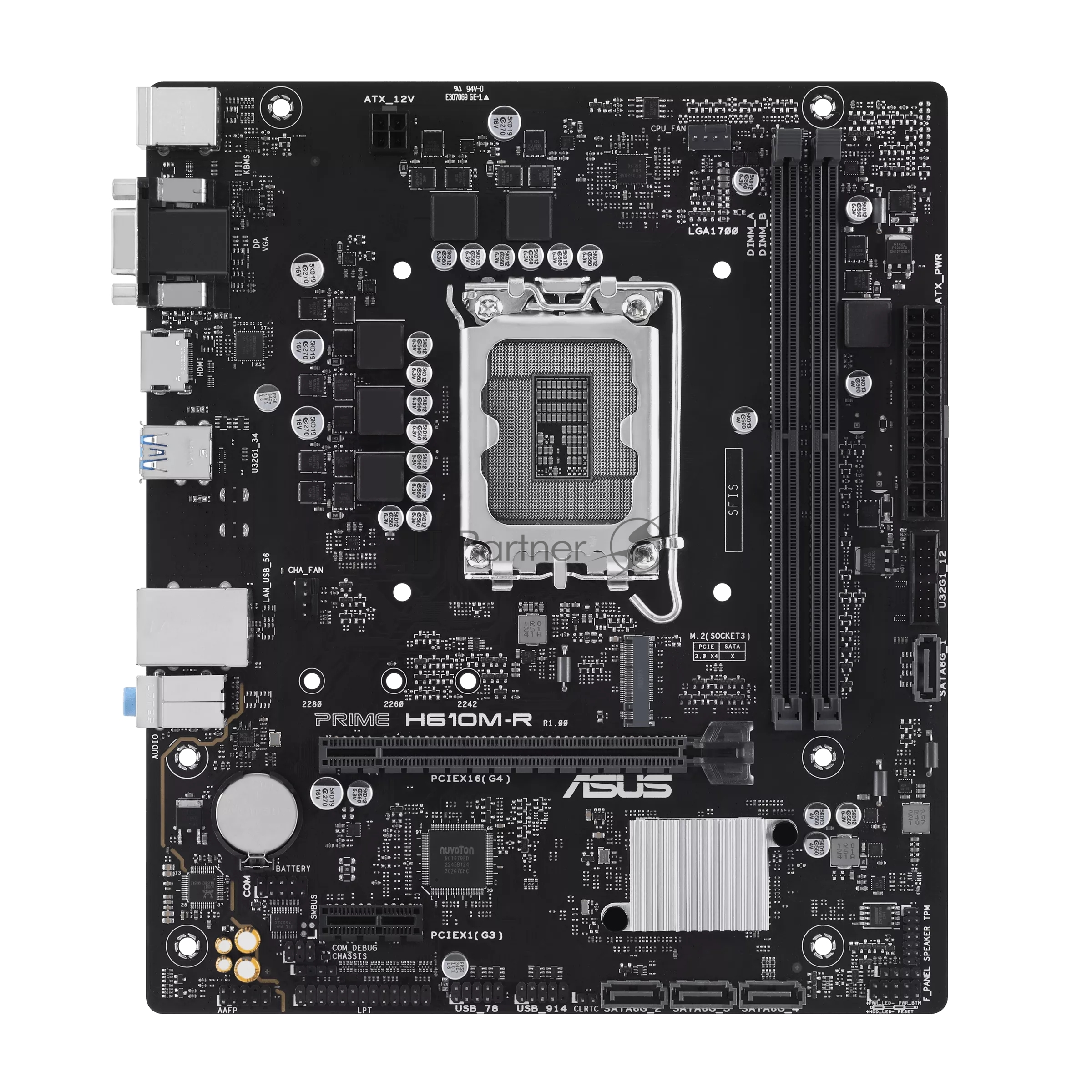 Материнская плата ASUS PRIME H610M-R-SI, LGA 1700, Intel H610, 2xDDR5, 4xSATA, 1xM.2, 1xPCI-E 4.0 x16, 1x1Gb LAN, 2xUSB-A 2.0, 2xUSB-A 3.2 Gen 1, 1xVGA, 1xHDMI, 1xDP, 3×3.5 мм, 1xRS-232, 1xLPT, 7.1, Micro-ATX