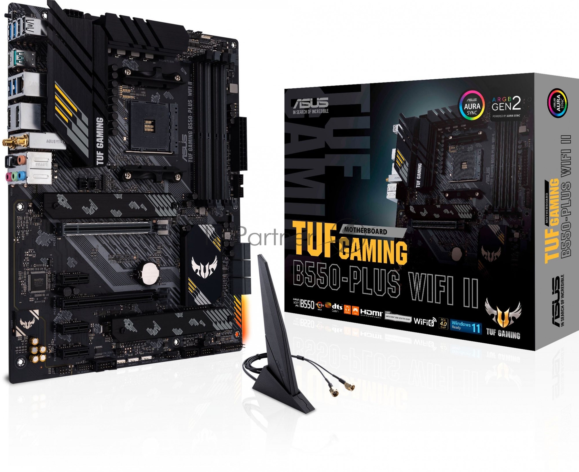 Материнская плата ASUS TUF GAMING B550-PLUS WIFI II, AM4, AMD B550, 4xDDR4, 6xSATA, 2xM.2, 1xPCI-E 3.0 x16, 1xPCI-E 4.0 x16, 3xPCI-E x1, 1xDP, 1xHDMI, 1x 2.5Gb LAN, 2xUSB-A 3.2 Gen 1, 1xUSB-A 3.2 Gen 2, 1xUSB-C 3.2 Gen 2, 3×3.5 мм, 7.1, ATX