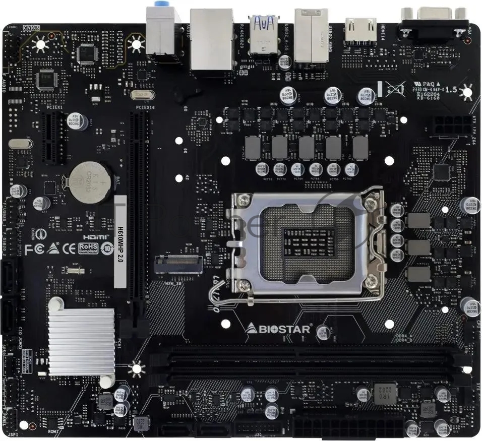 Материнская плата Biostar H610MHP 2.0, LGA 1700, Intel H610, 2xDDR4, 4xSATA, 1xM.2, 1xPCI-E 4.0 x16, 1xPCI-E x1, 1xHDMI, 1xVGA, 1x 1Gb LAN, 2xUSB-A 3.2 Gen 1, 4xUSB-A 2.0, 3×3.5 мм, 7.1, Micro-ATX