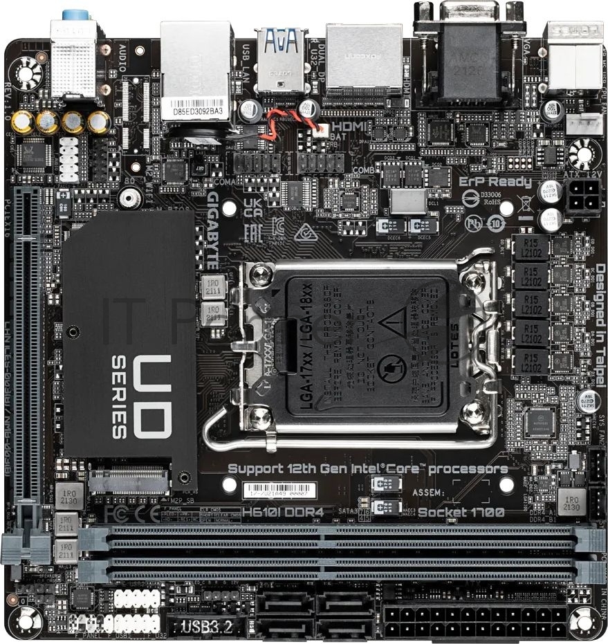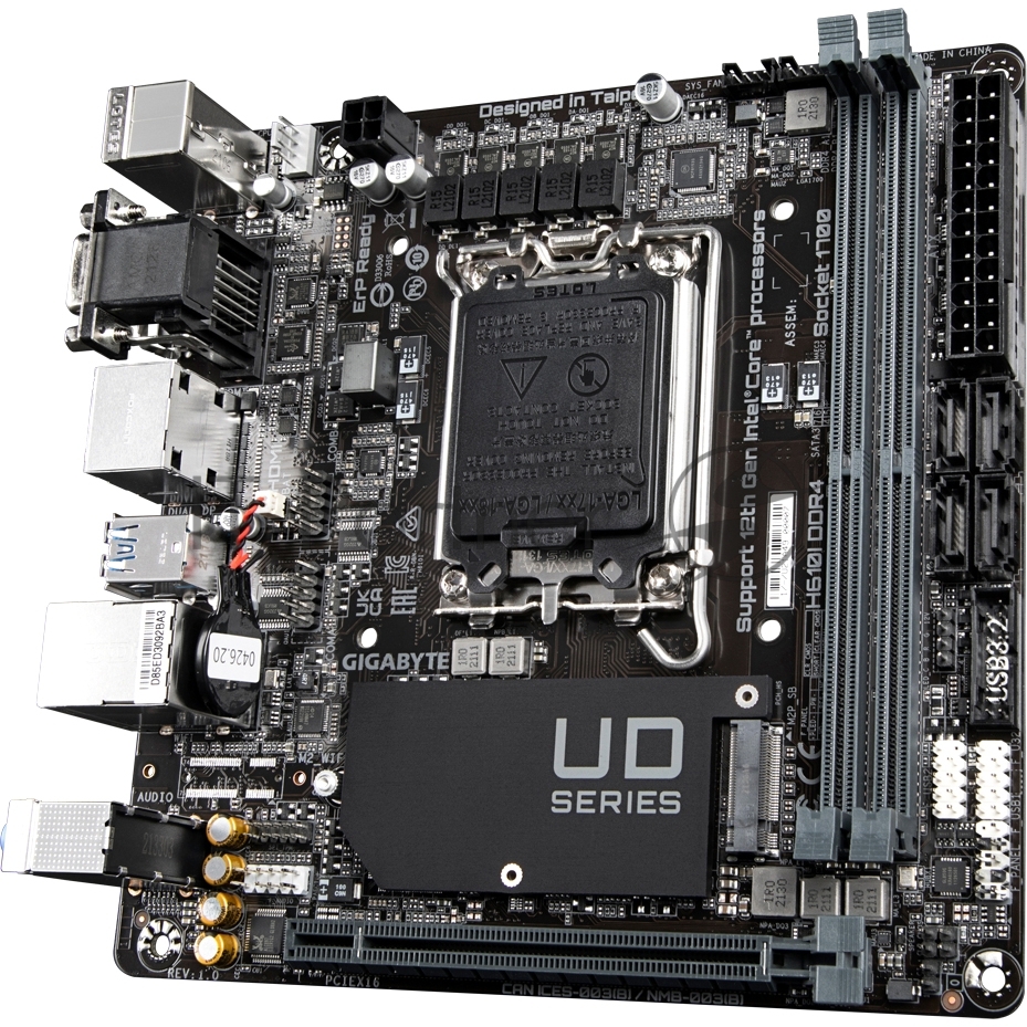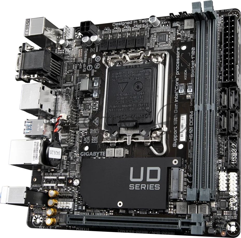 Материнская плата Gigabyte H610I DDR4, LGA 1700, Intel H610, 2xDDR4, 4xSATA, 1xM.2, 1xPCI-E 4.0 x16, 1xHDMI, 1xVGA, 2xDP, 1x 1Gb LAN, 2xUSB-A 3.2 Gen 1, 4xUSB-A 2.0, 3x 3.5 мм, 7.1, Mini-ITX