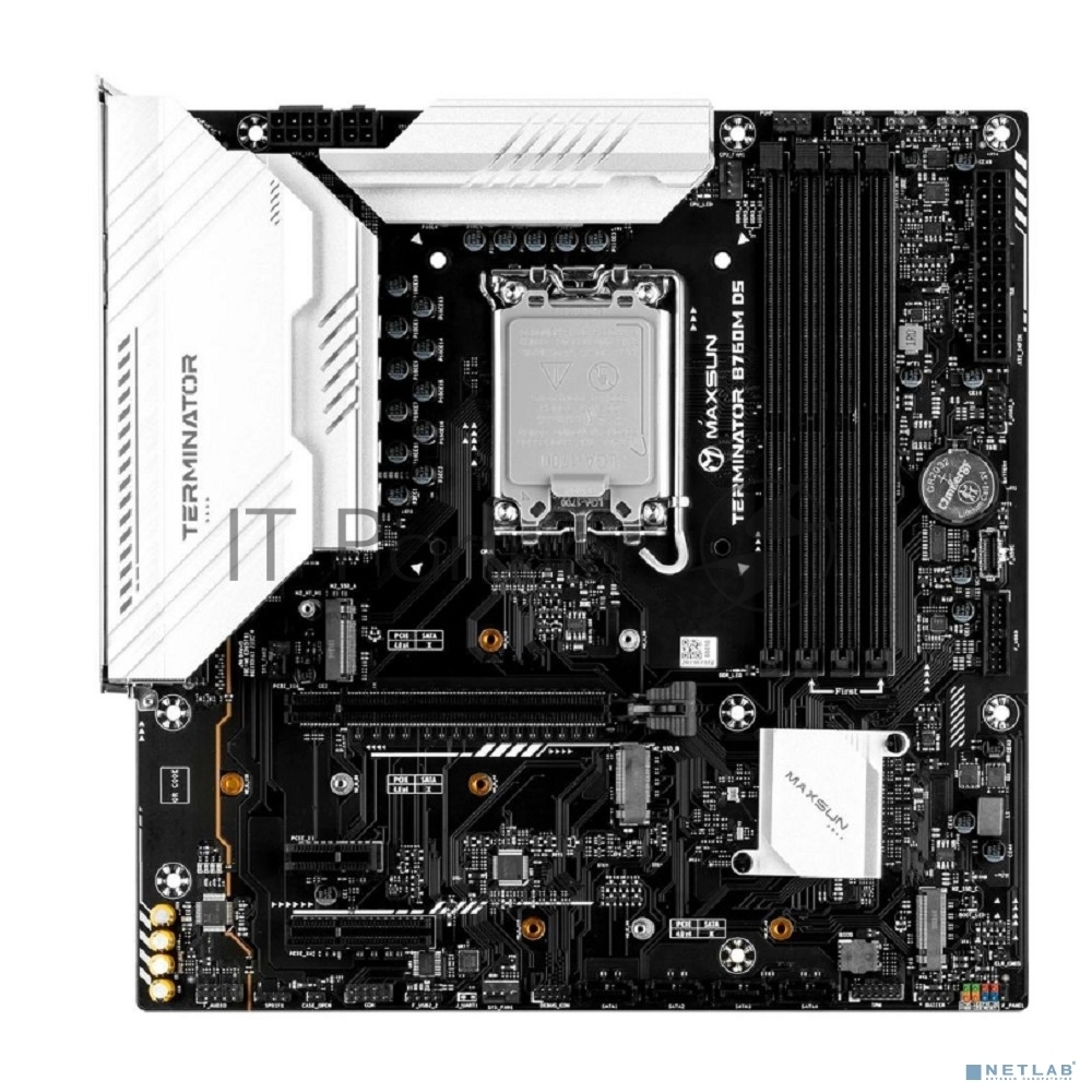 Материнская плата Maxsun Terminator B760M D5, LGA 1700, Intel B760, 4xDDR5, 4xSATA, 3xM.2, 1xPCI-E 5.0 x16, 1xPCI-E x4, 1xPCI-E 3.0 x1, 1xHDMI, 1xDP, 2xUSB 3.2 Gen 1, 6xUSB 2.0, 1x 2.5Gb LAN, 3×3.5 мм, 5.1, Micro-ATX