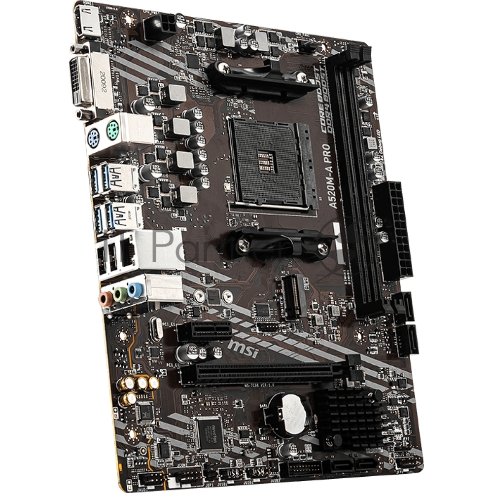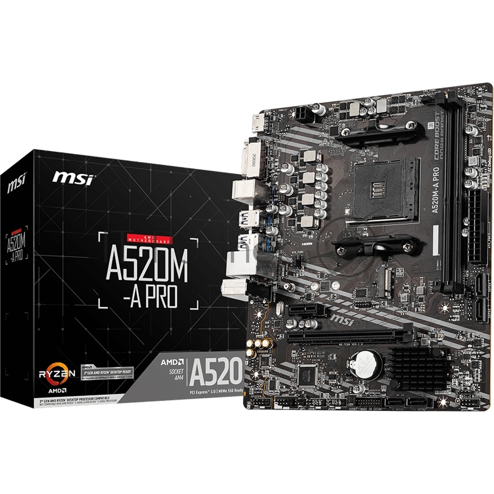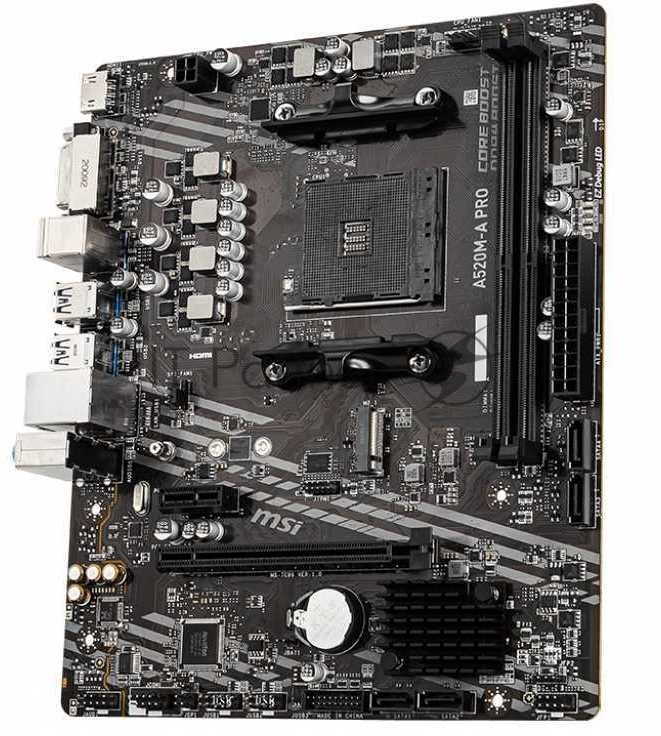 Материнская плата MSI A520M-A PRO, AM4, AMD A520, 2xDDR4, 4xSATA, 1xM.2, 1xPCI-E 3.0 x16, 1xDVI-D, 1xHDMI, 1x 1Gb LAN, 2xUSB 2.0, 4xUSB 3.2 Gen 1, 3×3.5 мм, 7.1, Micro-ATX