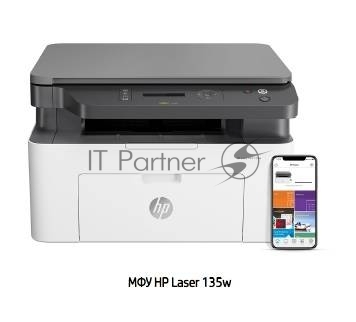 МФУ лазерный HP Laser 135w (4ZB83A), A4, ч/б, печ. до 20 стр/мин., скан. до 20 стр/мин., 1200 x 1200 dpi (печать) 600x600dpi (скан.), USB, Wi-Fi, Air Print, Mopria