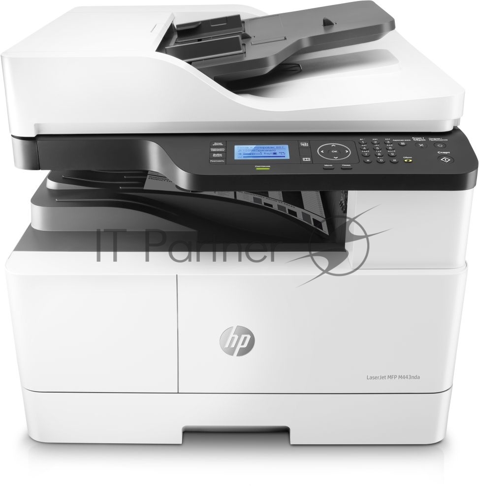 МФУ лазерный HP LaserJet MFP M443nda (8AF72A), A3, ч/б, печ. до 25 стр/мин. (А4) до 13 стр/мин. (А3), скан. до 21 стр/мин., 1200 x 1200 dpi (печать) 600x600dpi (скан.), USB, RJ-45