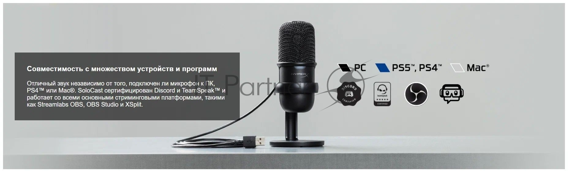 Микрофон проводной HyperX SoloCast 2м черный
