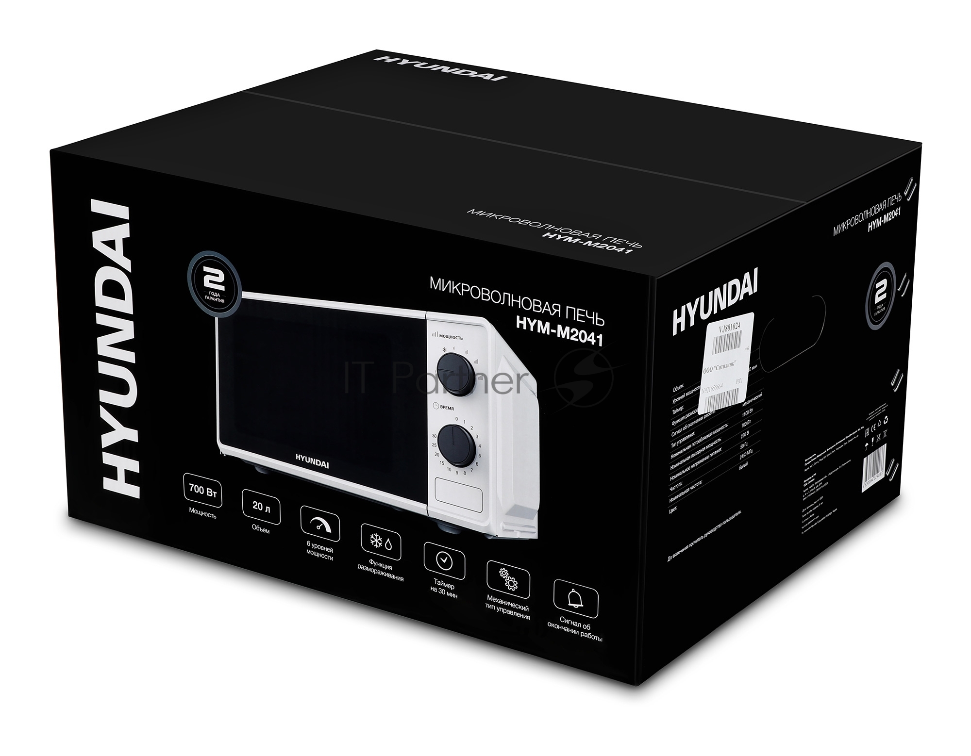 Микроволновая печь Hyundai HYM-M2041 белый, 20 л, 700 Вт, переключатели — поворотный механизм