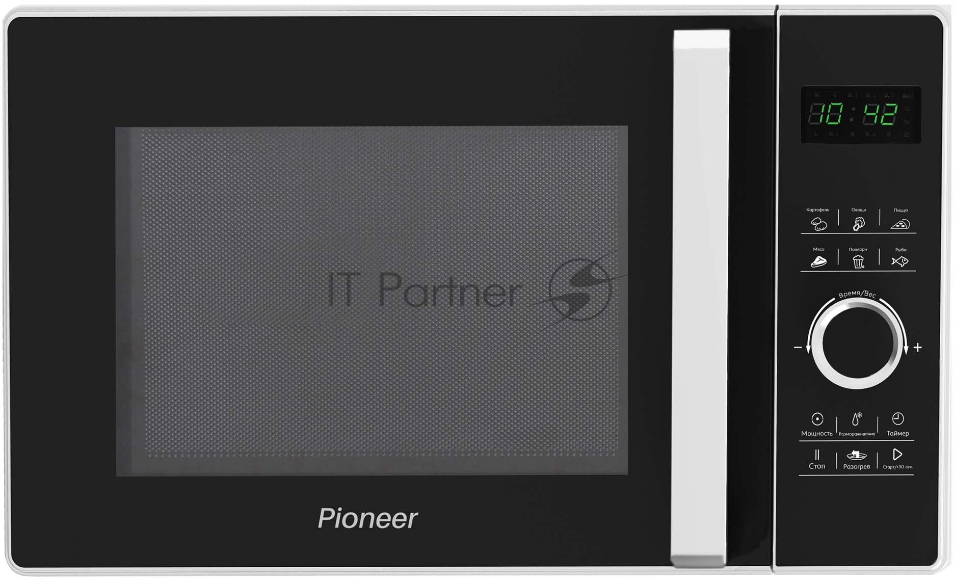 Микроволновая печь Pioneer MW356S белый, 23 л, 800 Вт, переключатели — сенсор/поворотный механизм