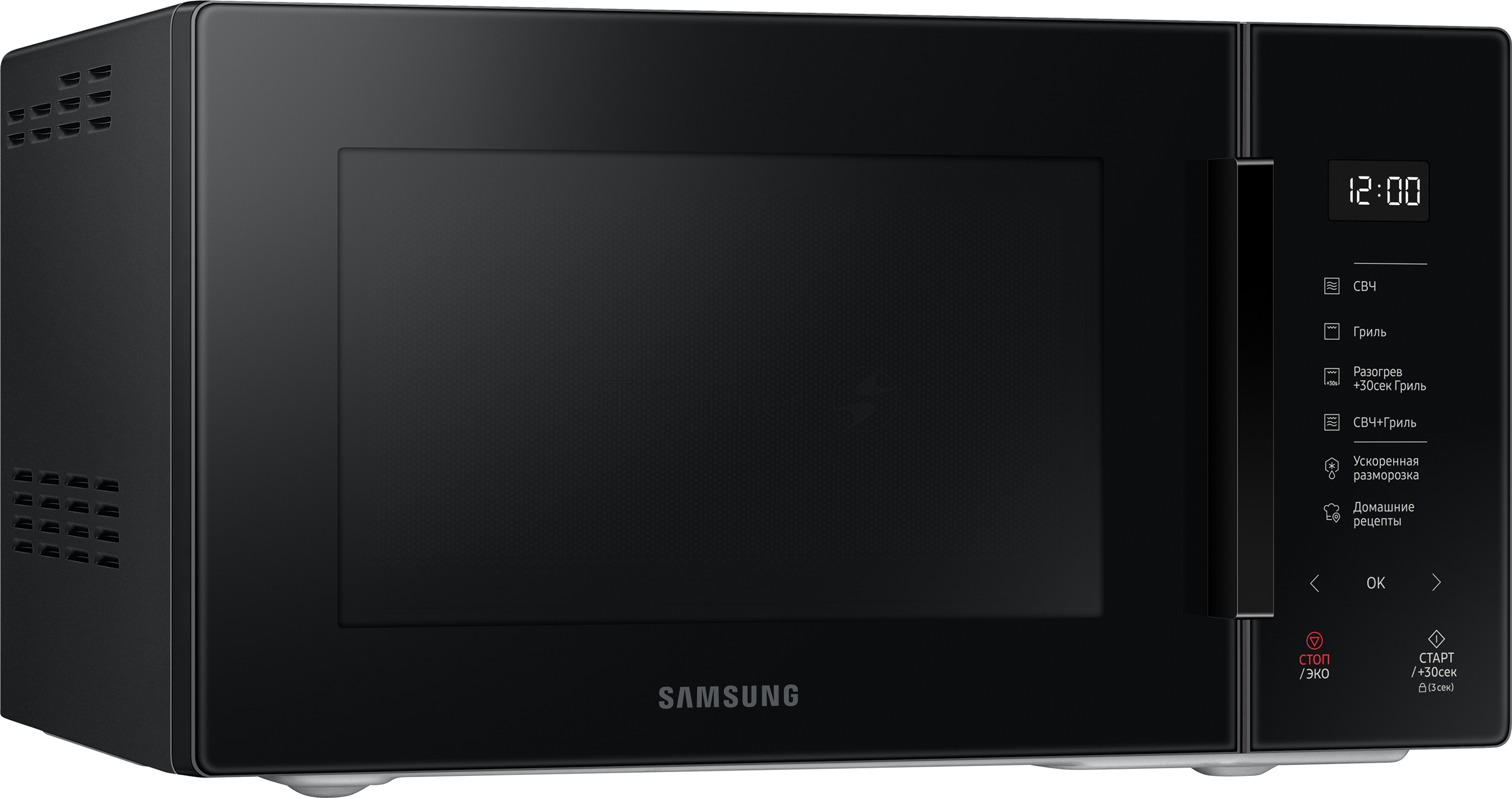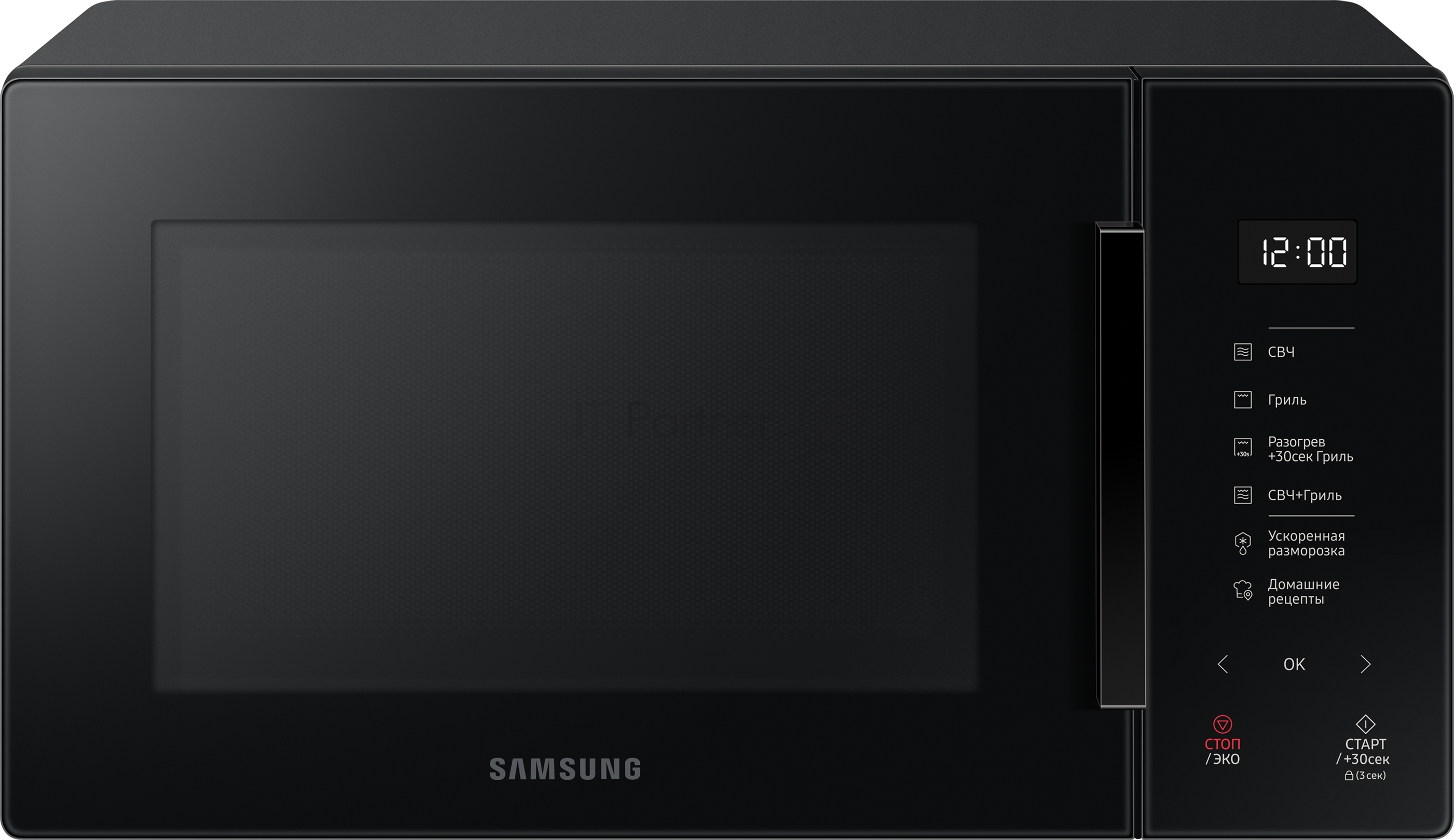 Микроволновая печь Samsung MG23T5018AK/BW черный, 23 л, 800 Вт, переключатели — сенсор