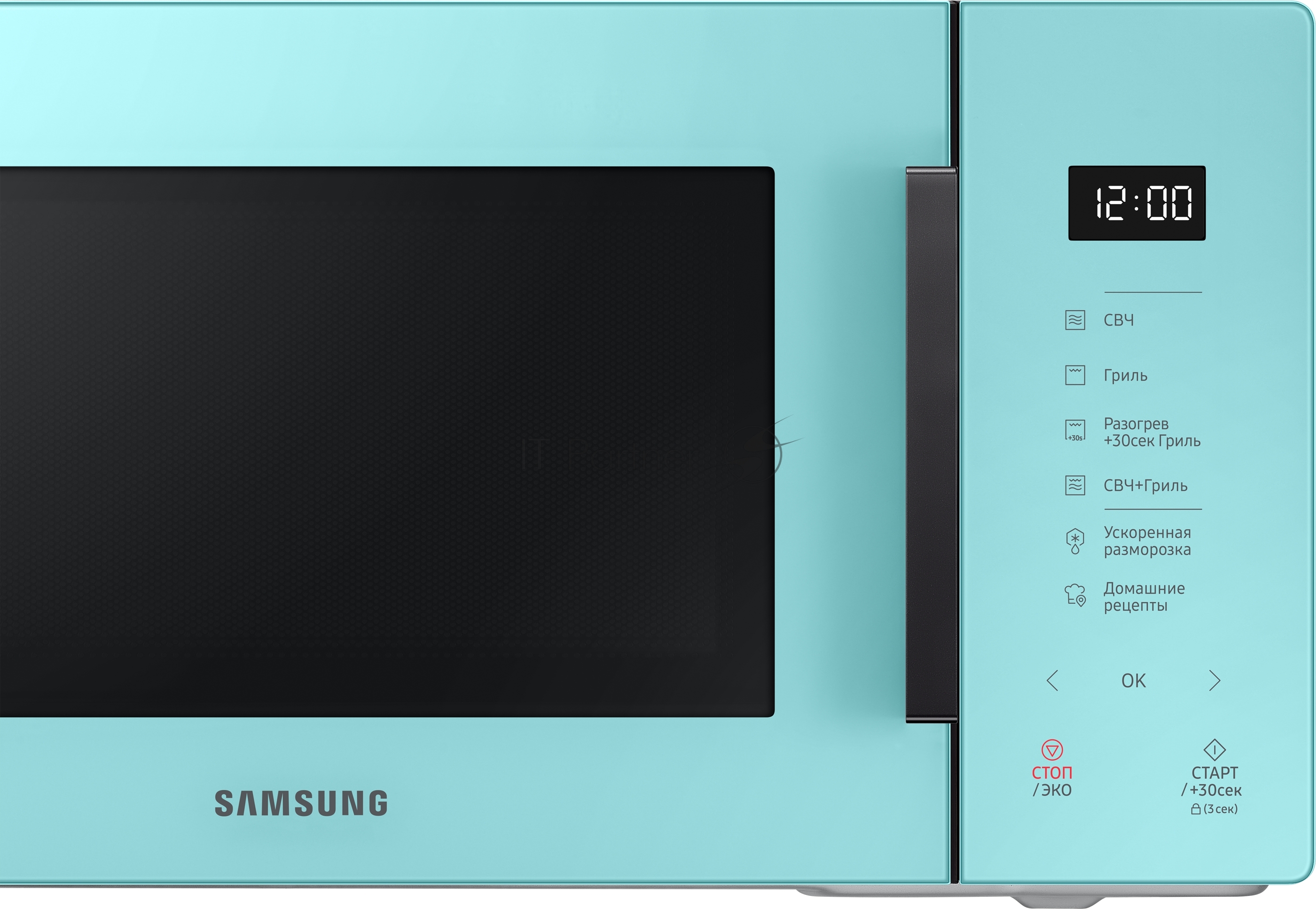 Микроволновая печь Samsung MG23T5018AN/BW голубой, 23 л, 800 Вт, переключатели — сенсор