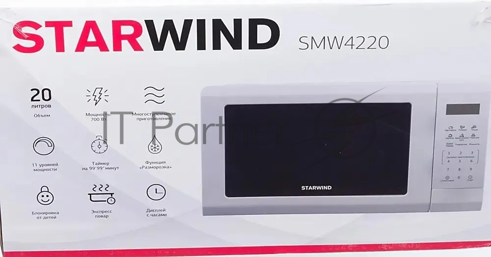 Микроволновая печь Starwind SMW4220 белый, 20 л, 700 Вт, переключатели — мембранные кнопки