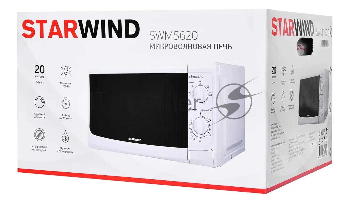 Микроволновая печь Starwind SWM5620 белый, 20 л, 700 Вт, переключатели — поворотный механизм