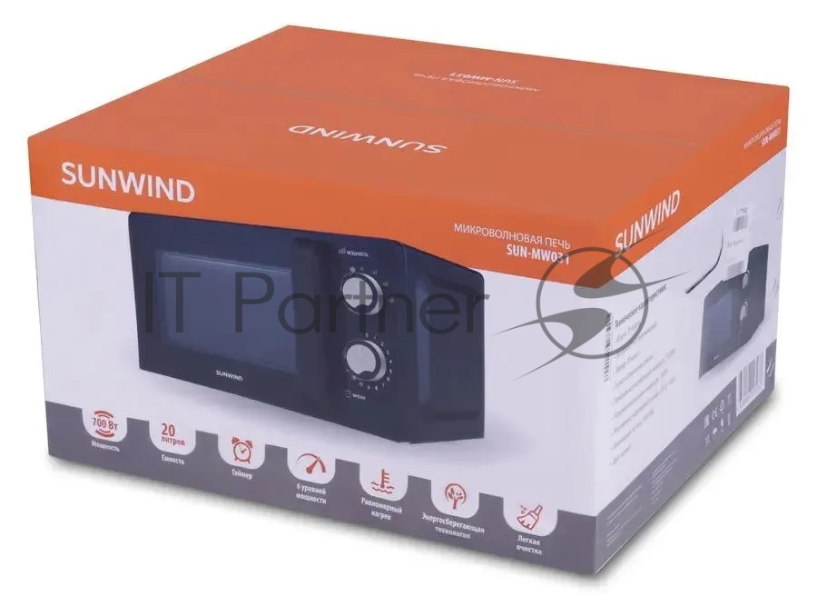 Микроволновая печь SUNWIND SUN-MW031 черный, 20 л, 700 Вт, переключатели — поворотный механизм