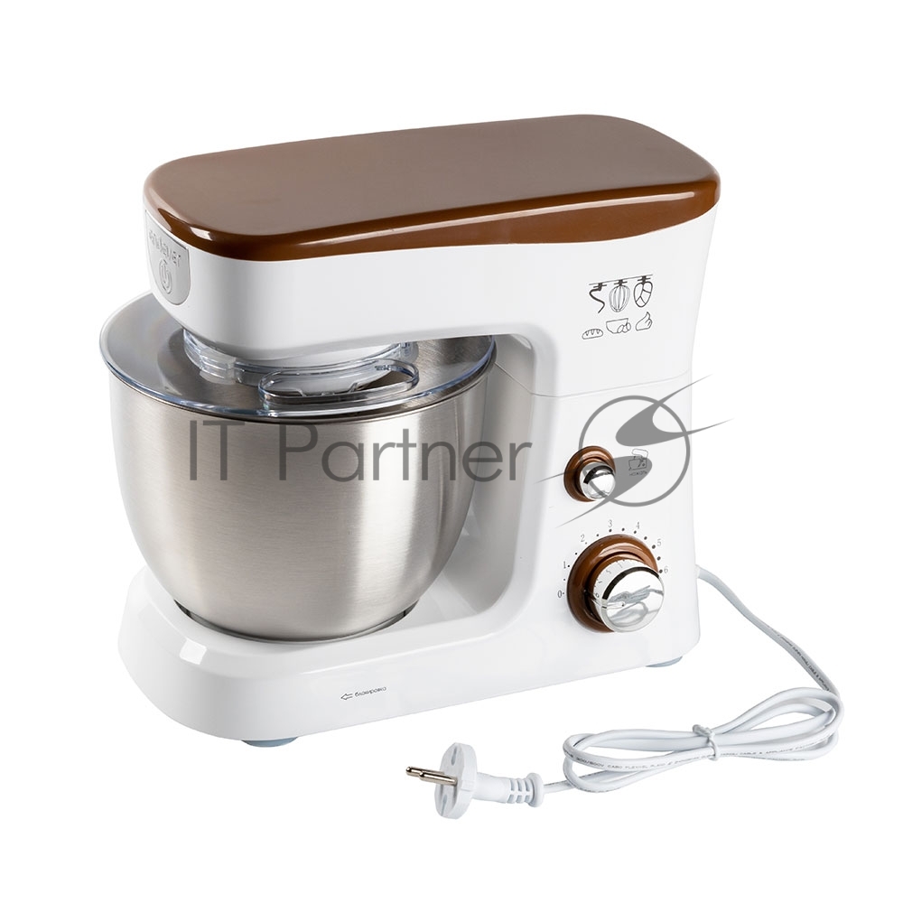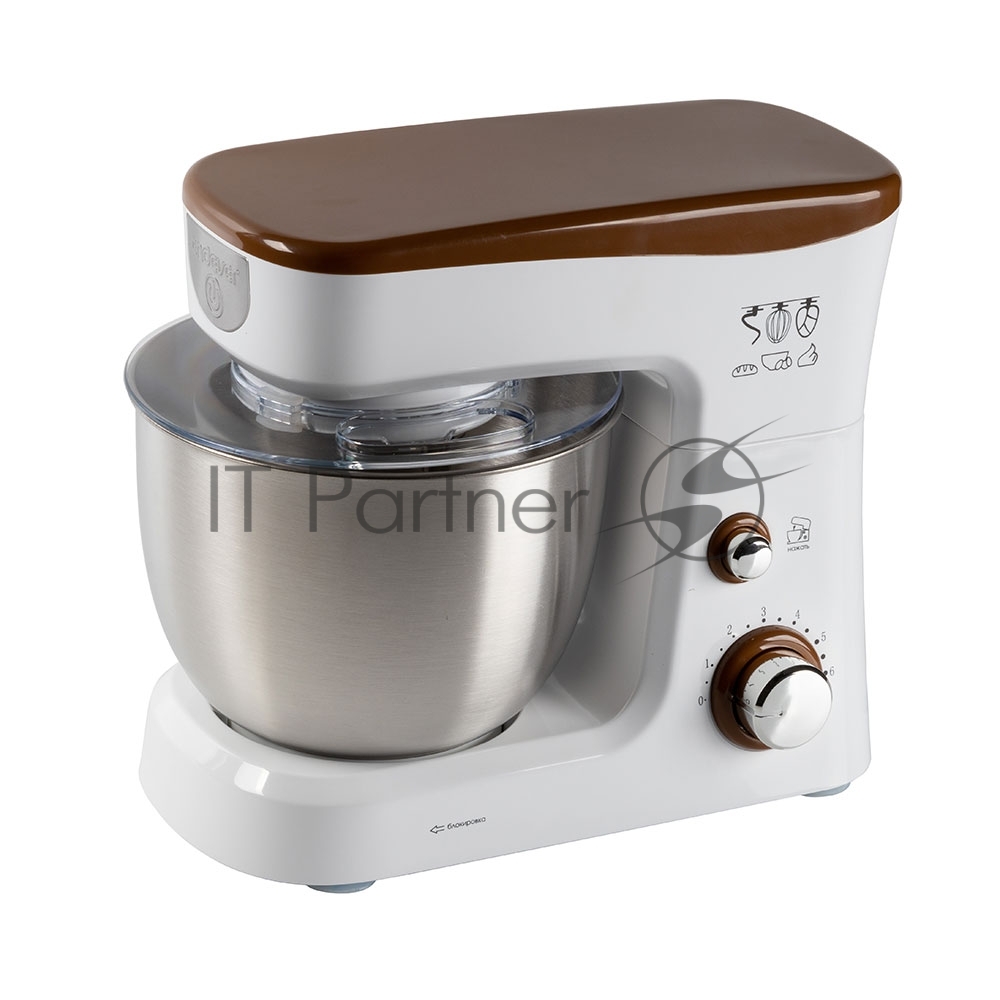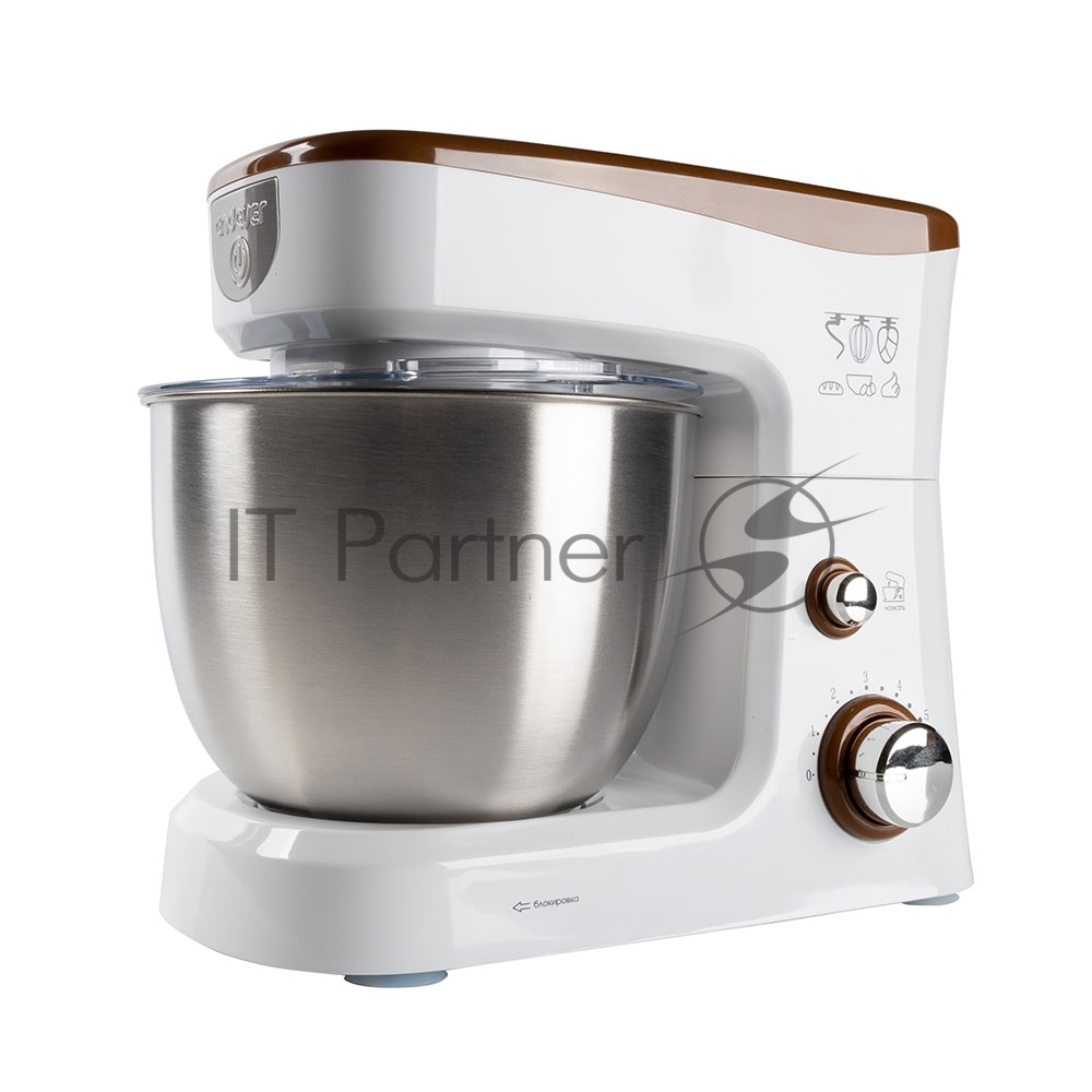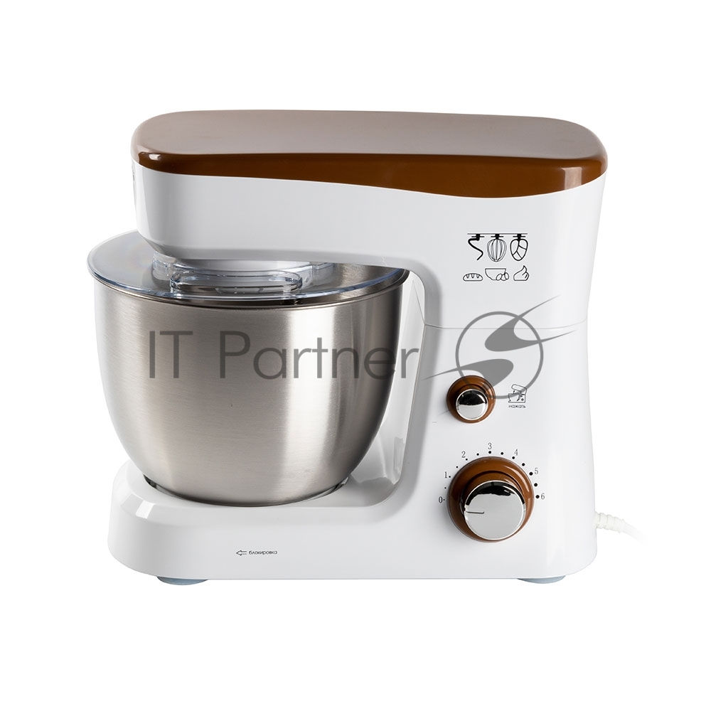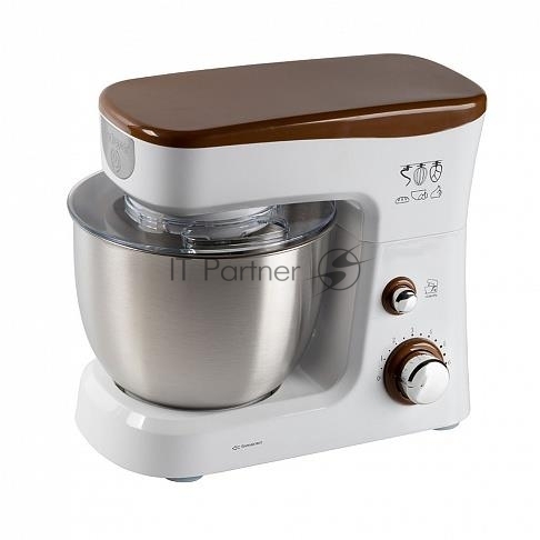 Миксер стационарный Endever Sigma-26, 1000 Вт., планетарный, многофункциональный, стальная чаша 3,5 л., регулировка скорости, белый/коричневый