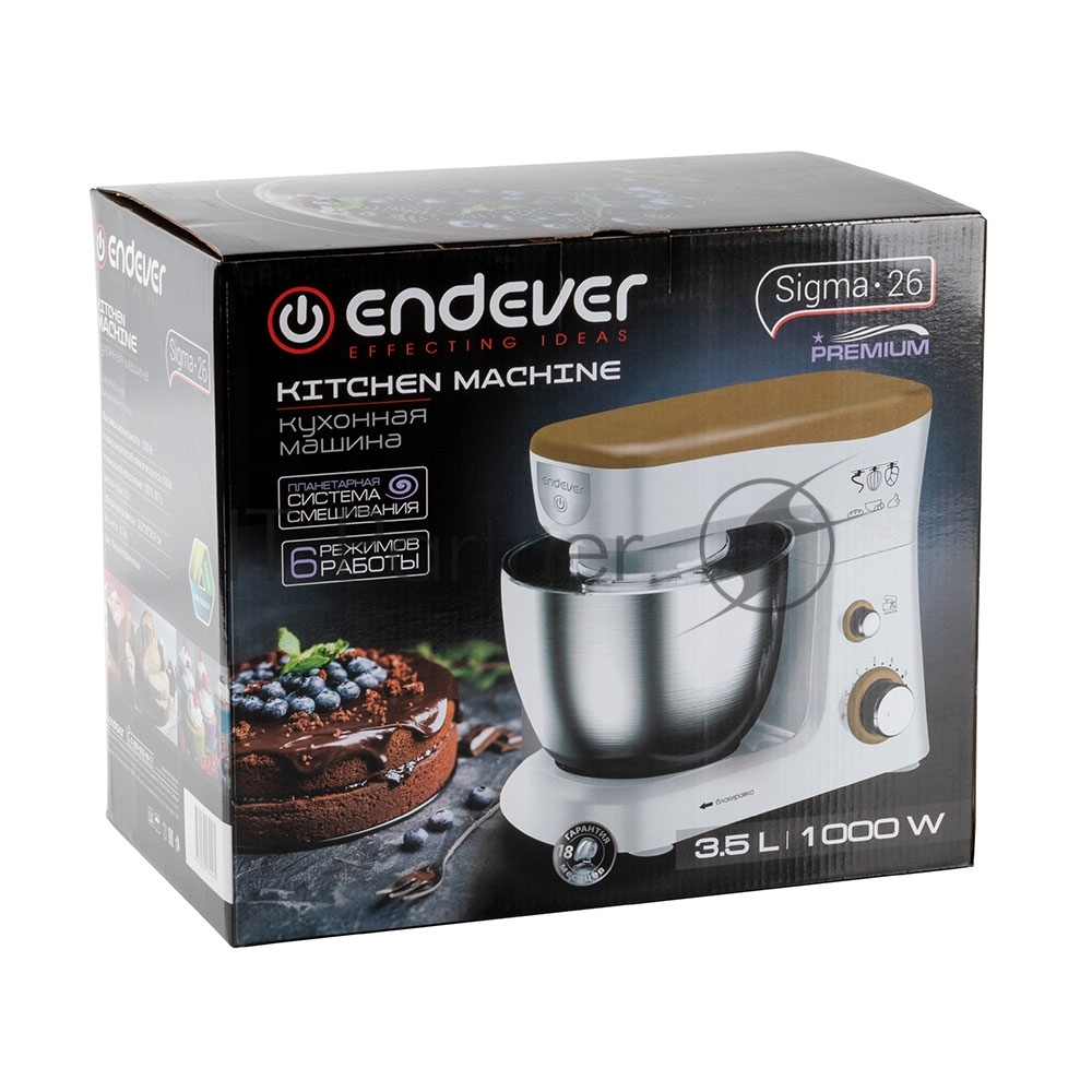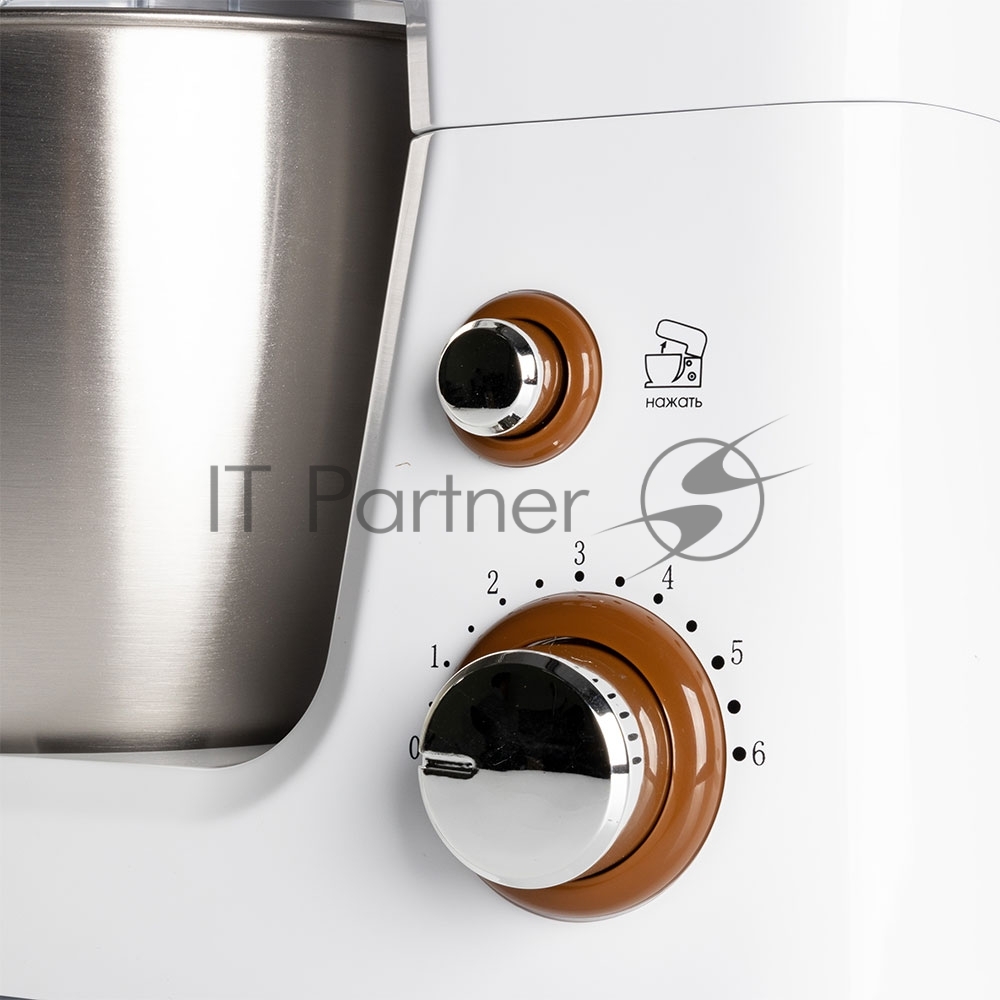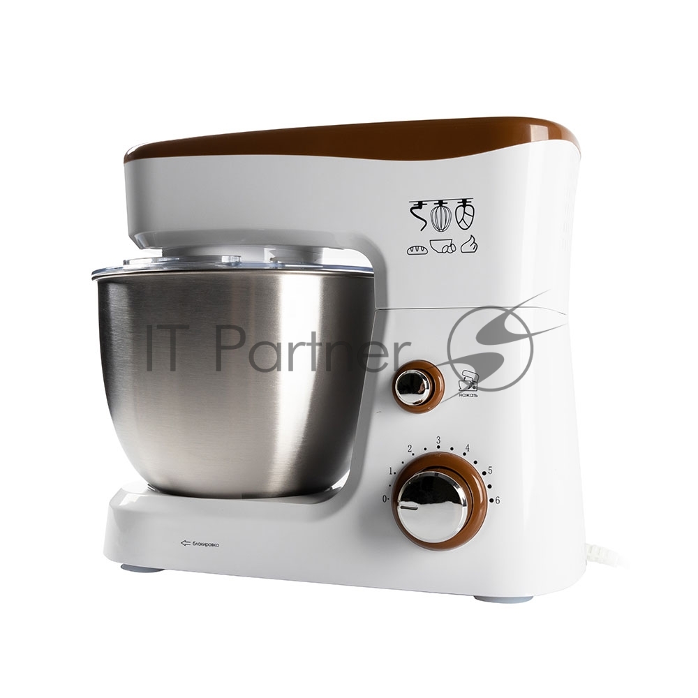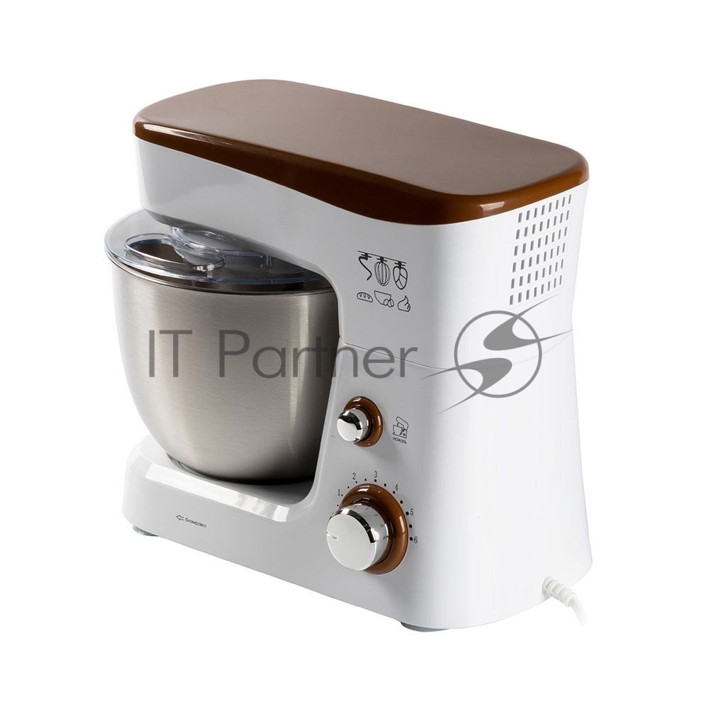 Миксер стационарный Endever Sigma-26, 1000 Вт., планетарный, многофункциональный, стальная чаша 3,5 л., регулировка скорости, белый/коричневый