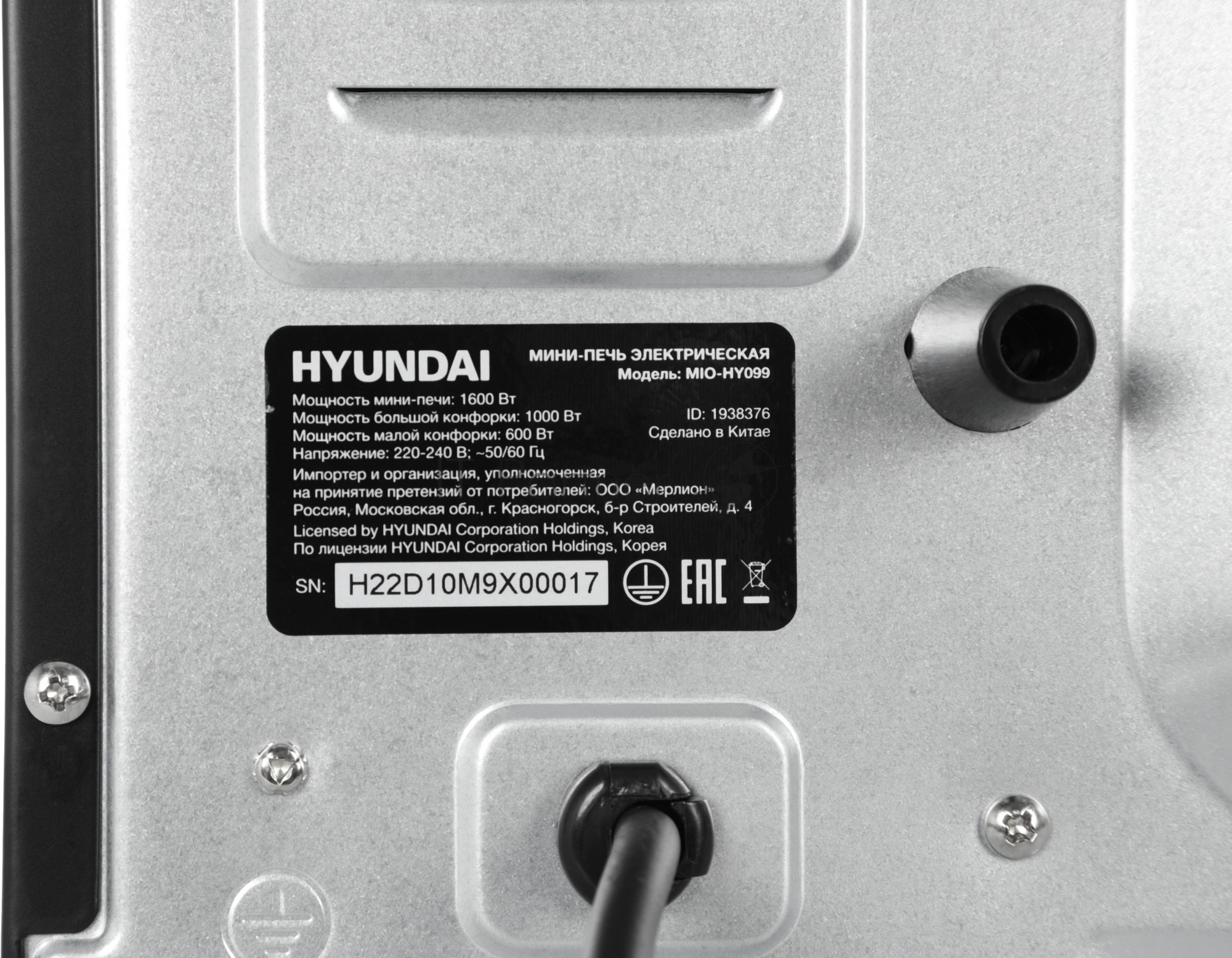 Мини-печь Hyundai MIO-HY099 45л. 2000Вт черный