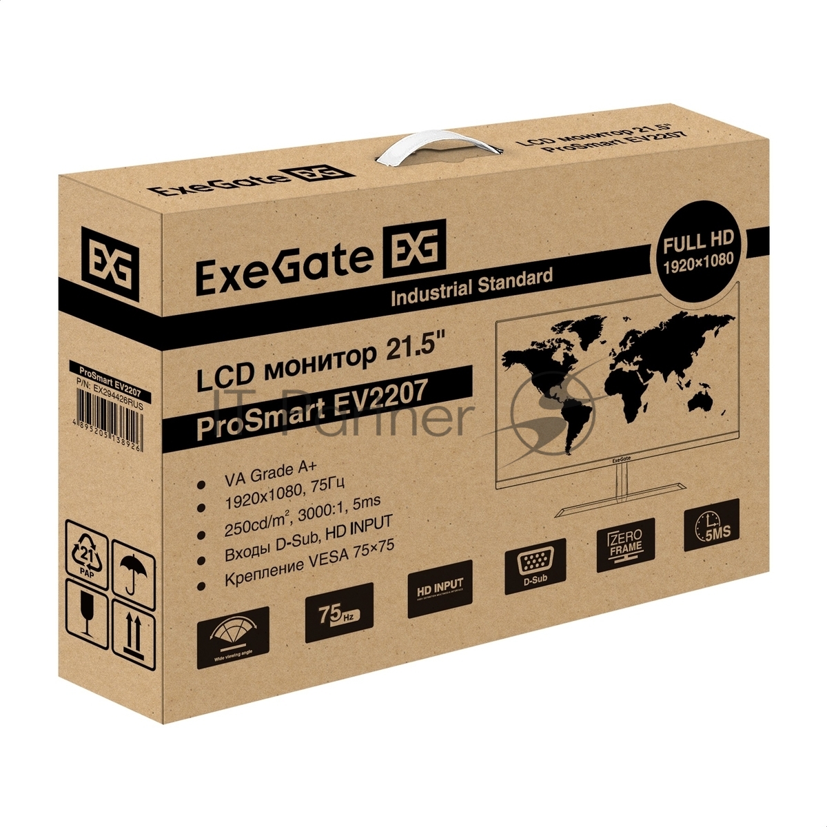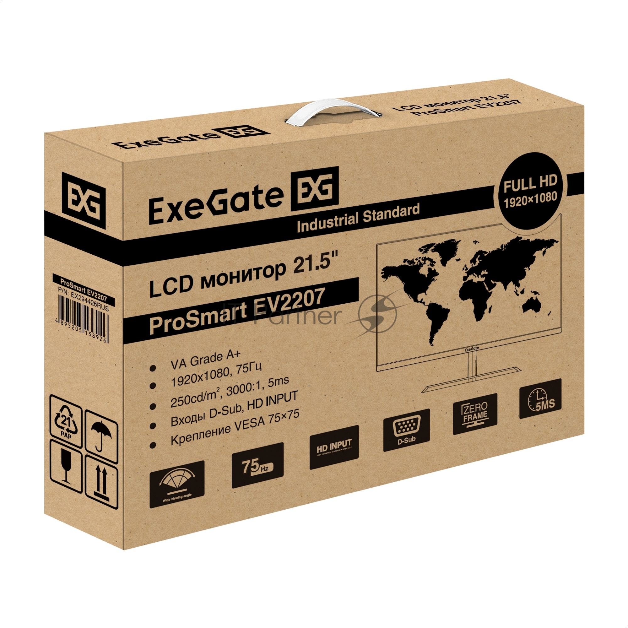 Монитор 22″ ExeGate ProSmart EV2207 VA 1920×1080, 75 Гц, 5 мс, 16:9, 250 кд/м2, 1xHDMI, 1xVGA, черный