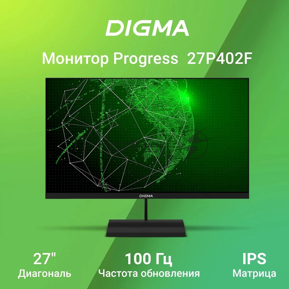 Монитор 27″ Digma Progress 27P402F IPS 1920×1080, 100 Гц, 5 мс, 16:9, 300 кд/м2, 1xHDMI, 1xDP, черный