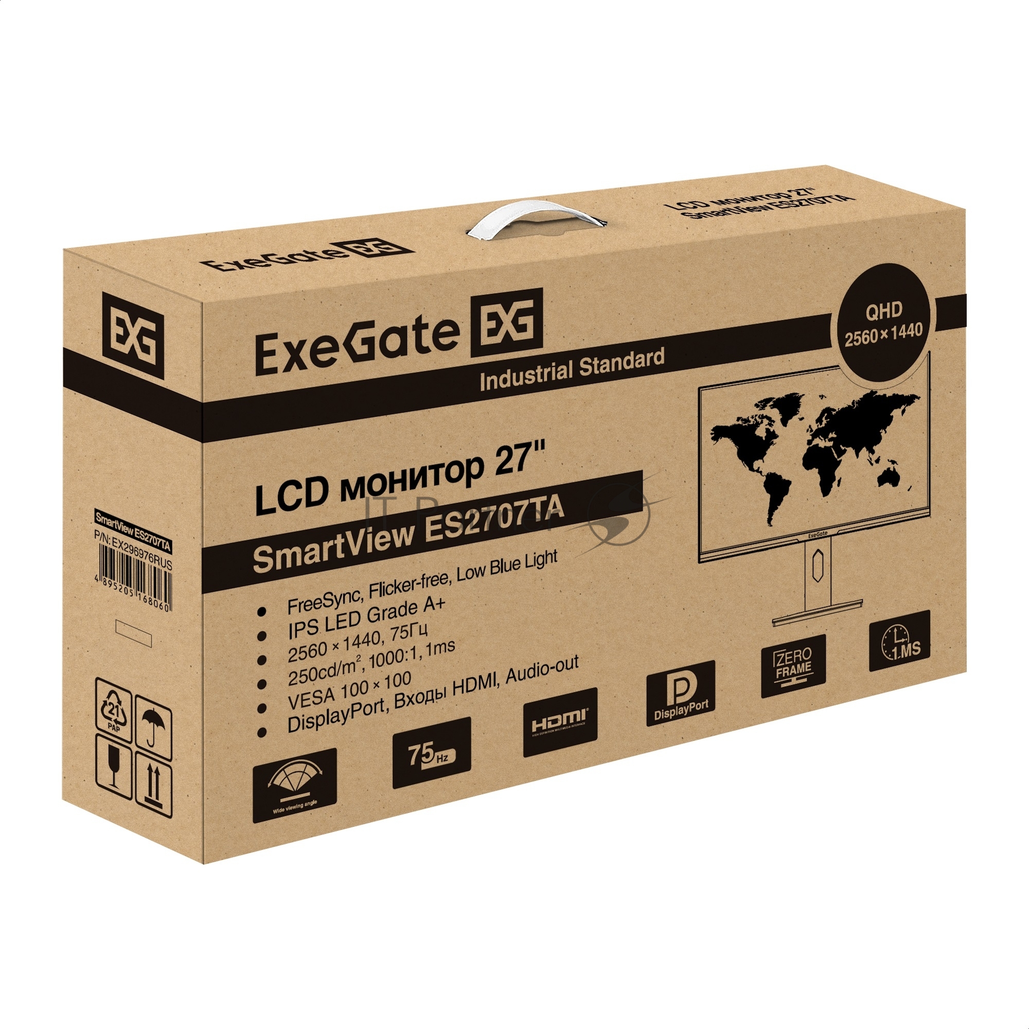 Монитор 27″ ExeGate ES2707TA IPS 2560×1440, 75 Гц, 1 мс, 16:9, 250 кд/м2, 1xHDMI, 1хDP, 1×3.5 мм, черный