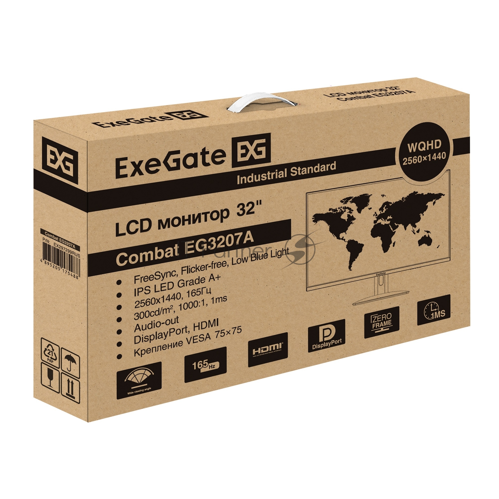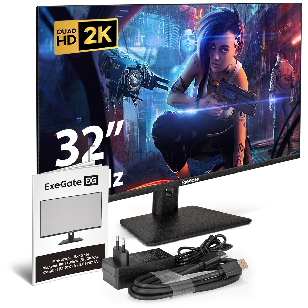 Монитор 31.5″ ExeGate Combat EG3207A IPS 2560×1440, 165 Гц, 1 мс, 16:9, 300 кд/м², 2xHDMI, 1xDP, 1xUSB, 1×3.5 мм, черный