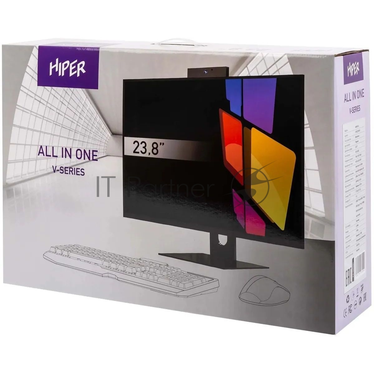 Моноблок HIPER V6, 23.8″(1920×1080 (матовый) IPS)/Intel Core i3 14100(3.5Ghz)/8192Mb/256PCISSDGb/noDVD/BT/WiFi/war 1y/6.45kg/черный/Win11Pro + Cam 5.0 SD/Проводные МК/WiFi6