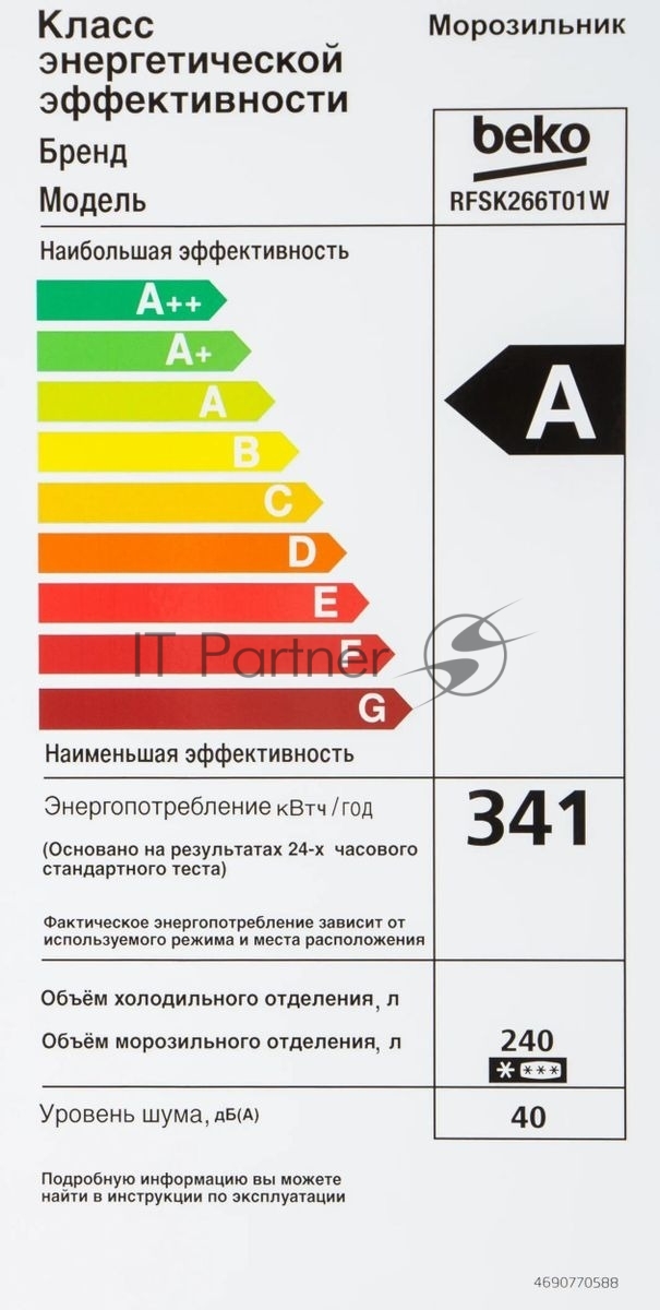 Морозильная камера Beko RFSK266T01W, белый, 240 л, 4 ящика