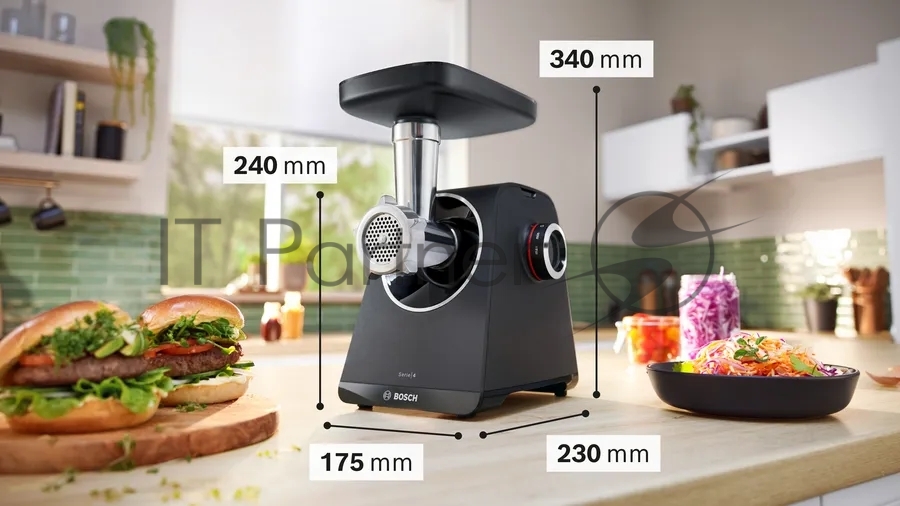 Мясорубка Bosch MFWS440B, 1900W, черный