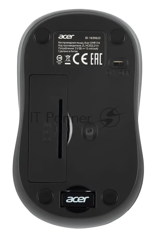 Мышь беспроводная Acer OMR134 серый, 1000 dpi, радиоканал, USB, кнопки — 3