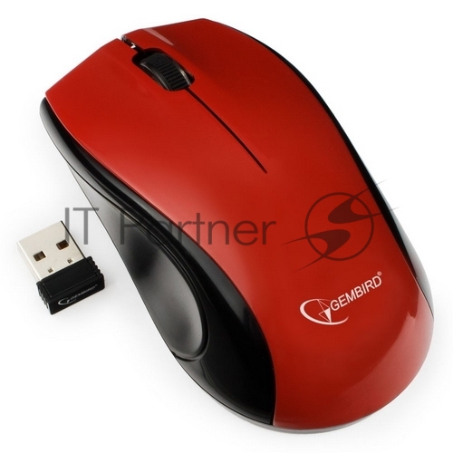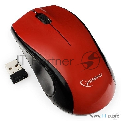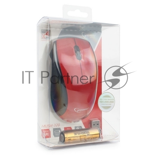 Мышь беспроводная Gembird MUSW-320-R красный, 1000 dpi, радиоканал, USB, кнопки — 3