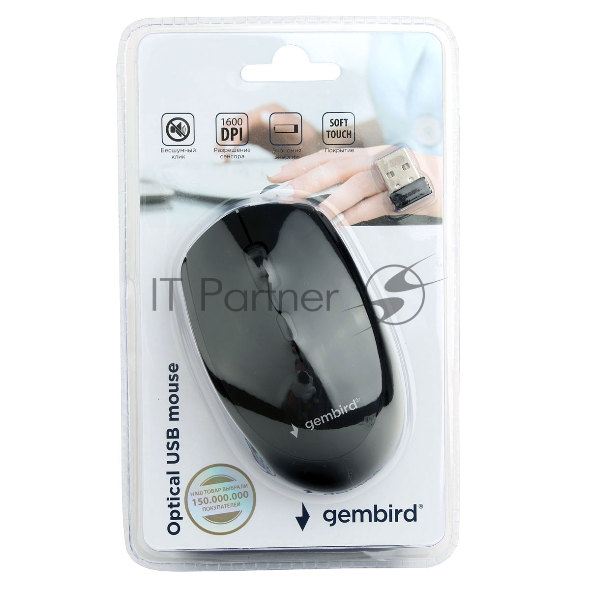 Мышь беспроводная Gembird MUSW-354 черный, 1600 dpi, радиоканал, USB, кнопки — 4