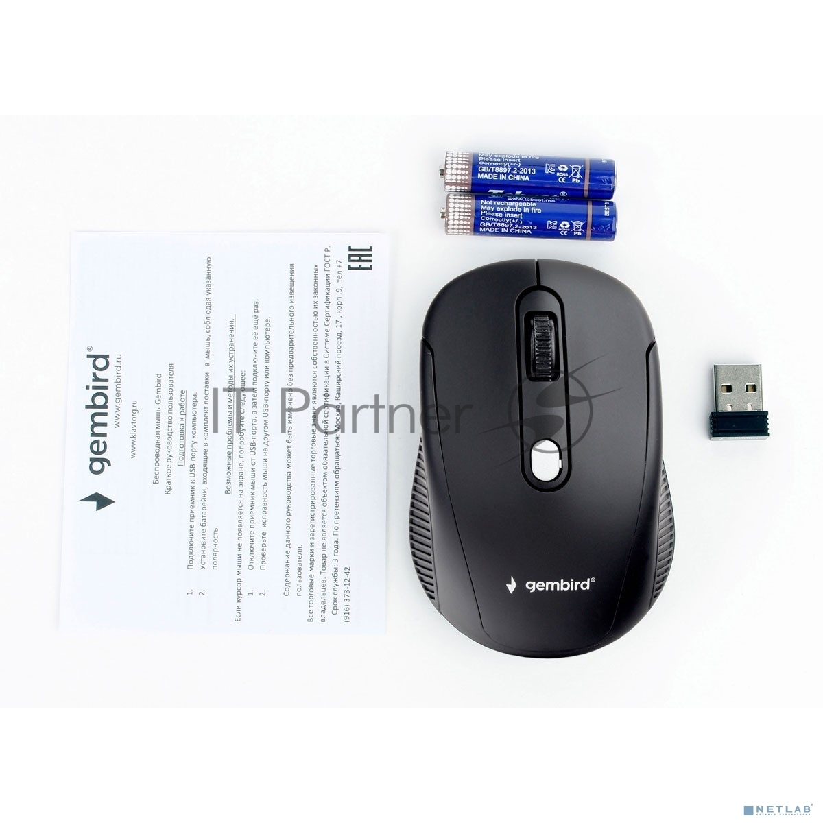 Мышь беспроводная Gembird MUSW-420 черный, 1600 dpi, радиоканал, USB, кнопки — 4