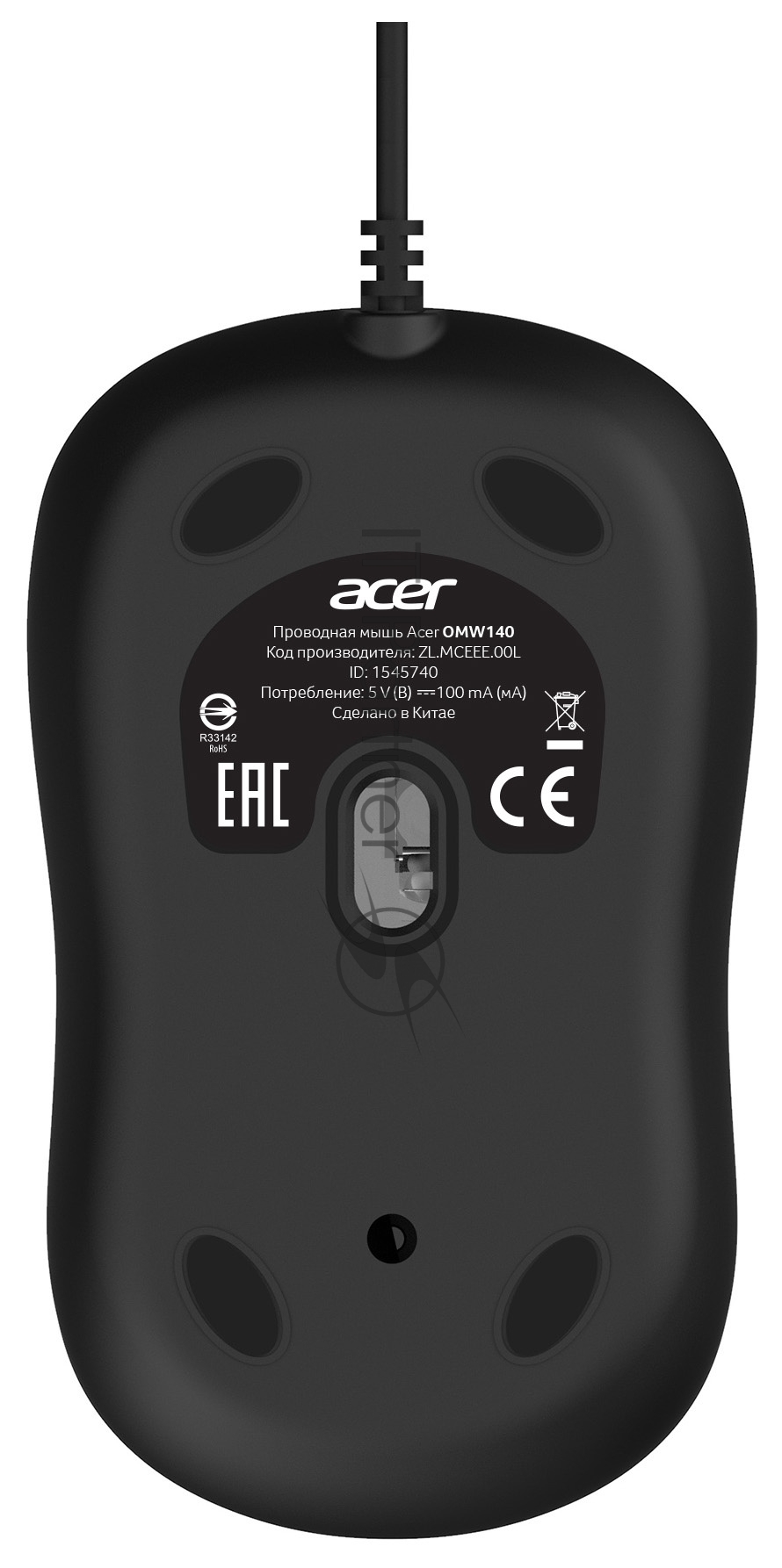 Мышь проводная Acer OMW140 черный, 1200 dpi, USB, кнопки — 3
