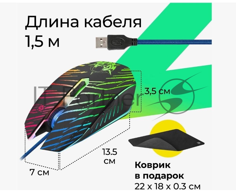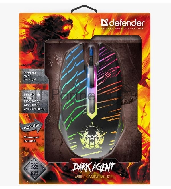 Мышь проводная Defender Dark Agent GM-590L черный, 12800 dpi, USB, кнопки — 6