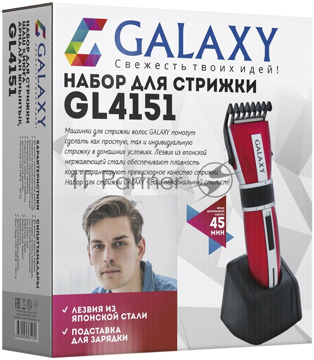 Набор для стрижки Galaxy GL 4151, красный, аккумуляторный, лезвия из японской нержавеющей стали, филировочный гребень, индикатор работы и заряда, время непрерывной работы 45 мин, эргономичный дизайн