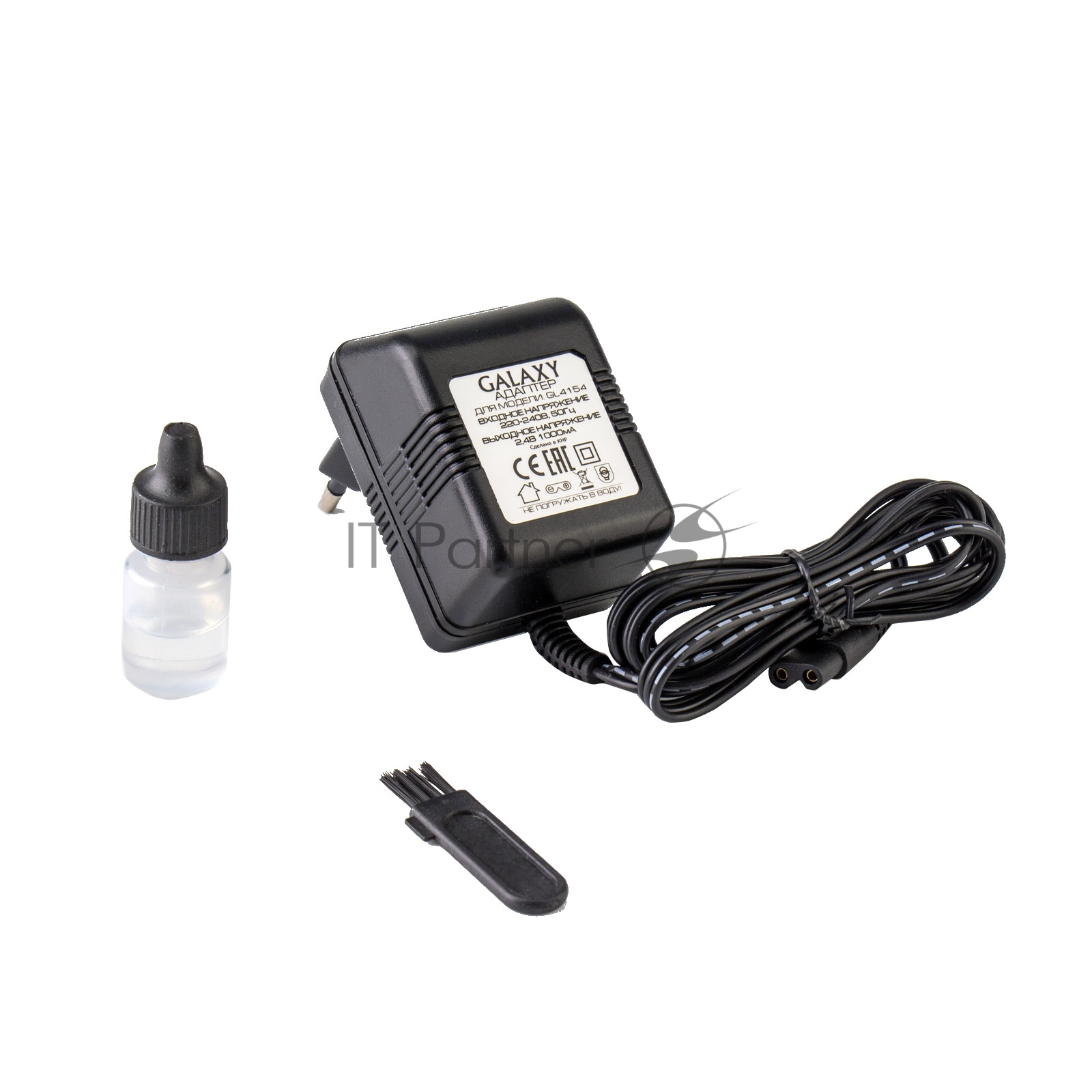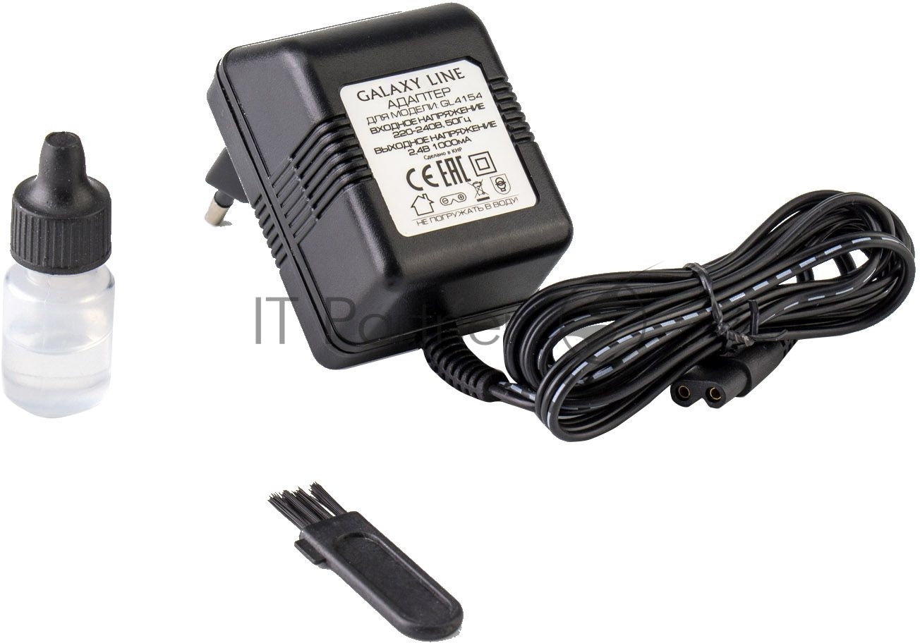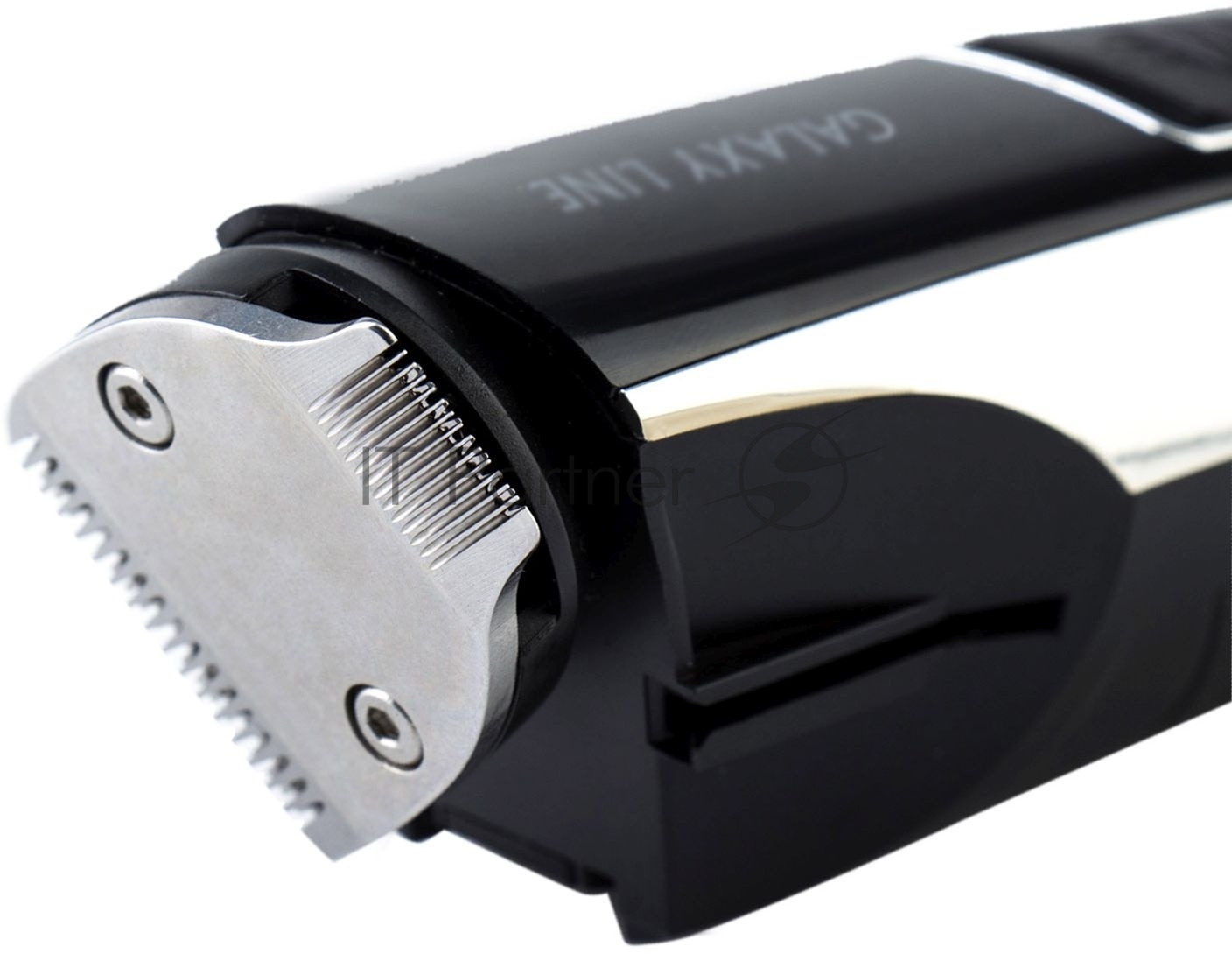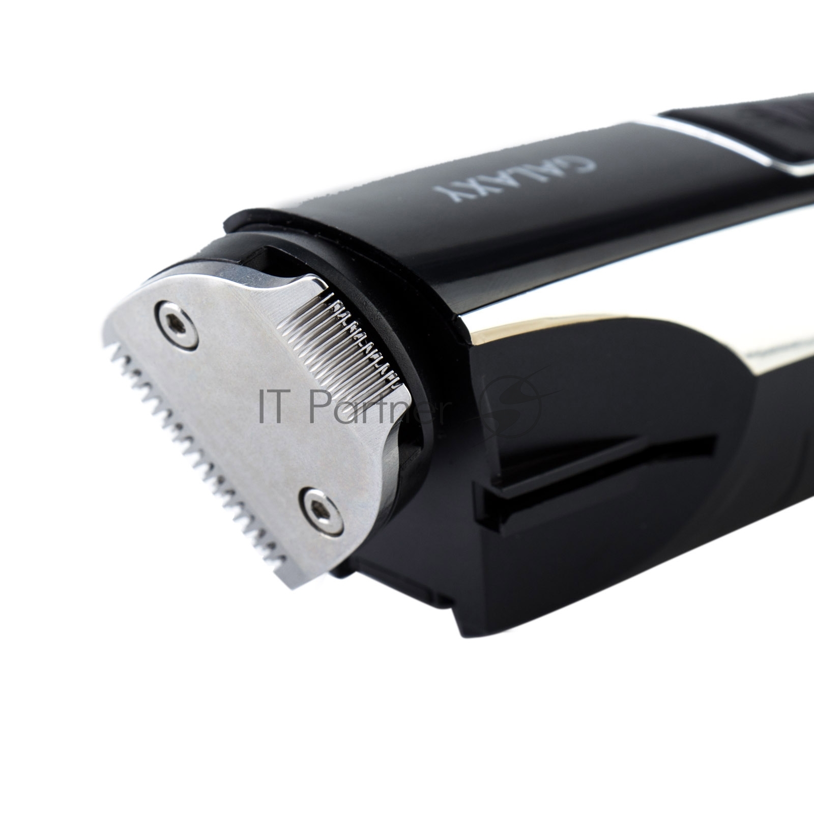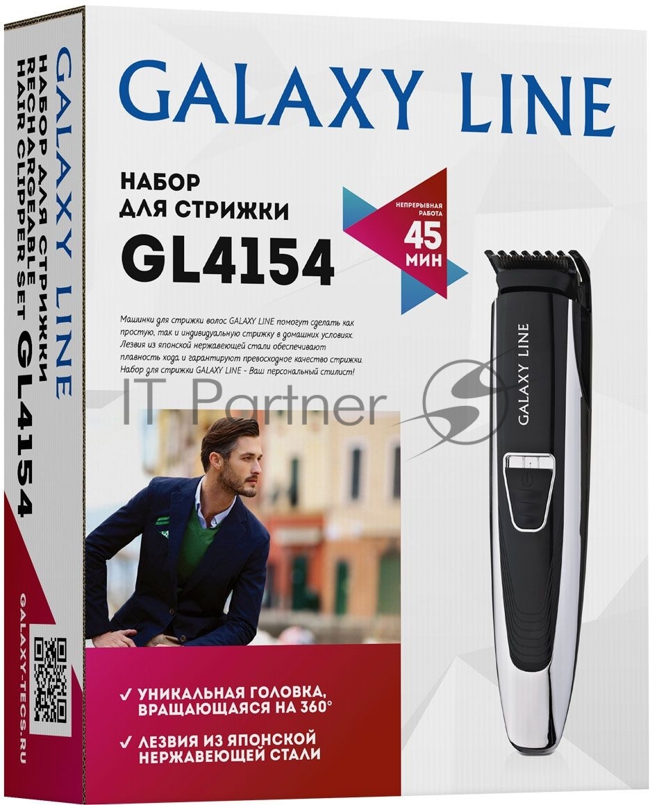 Набор для стрижки Galaxy Line GL 4154, черный с серебристым, аккумуляторный, лезвия из япон. нержав. стали, индикатор работы и заряда, вр. непрер. раб. 45 мин, регулировка длины стрижки (2; 5; 10; 15мм), нож шириной 41 мм, триммер шир. 25 мм, головка вращ. на 360