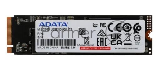 Накопитель SSD ADATA LEGEND 960, 1Tb, PCIe 4.0 x4, M.2 2280, NVMe, R/W 7400/6000, с радиатором