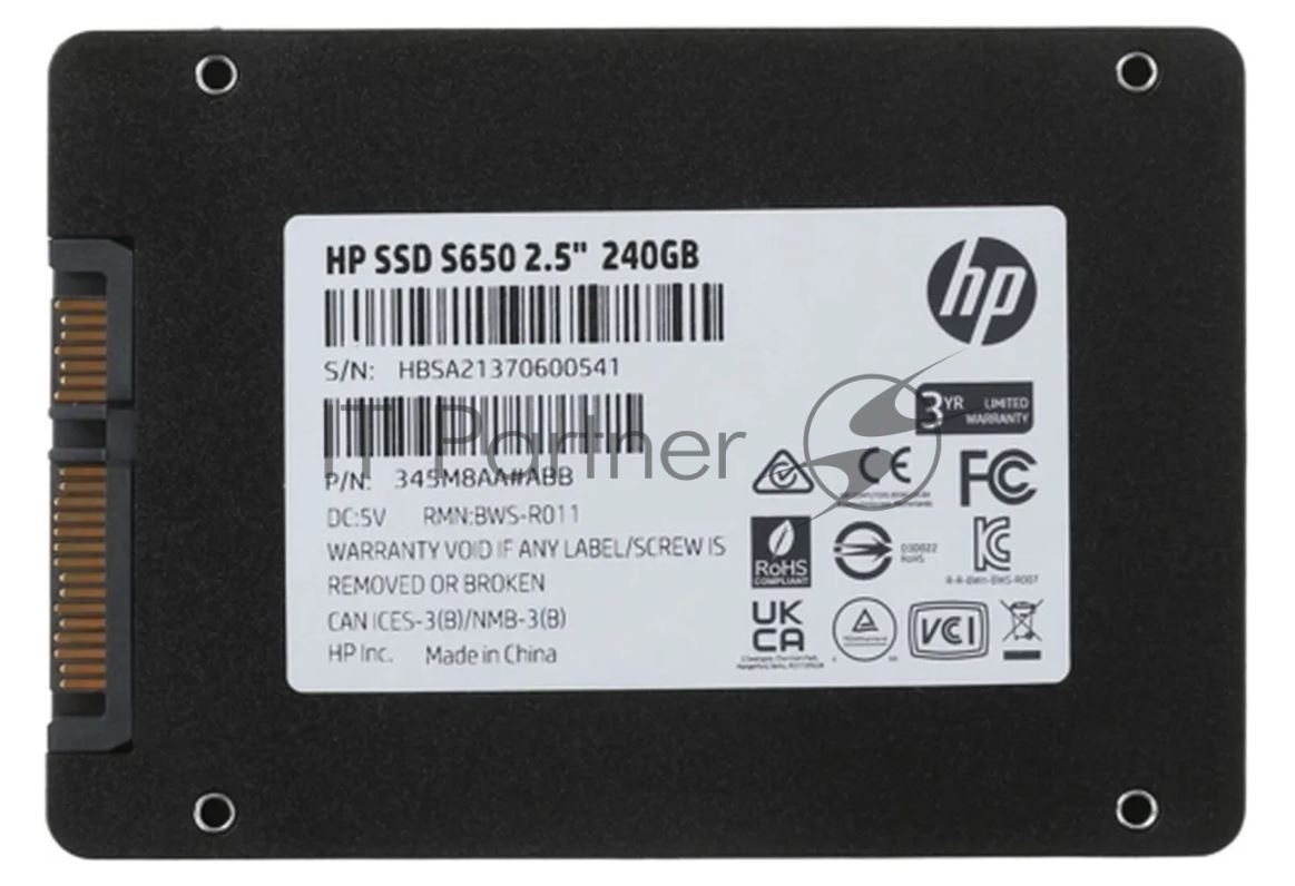 Накопитель SSD HP S650, 240Gb, 2.5″, SATA III, R/W 540/450