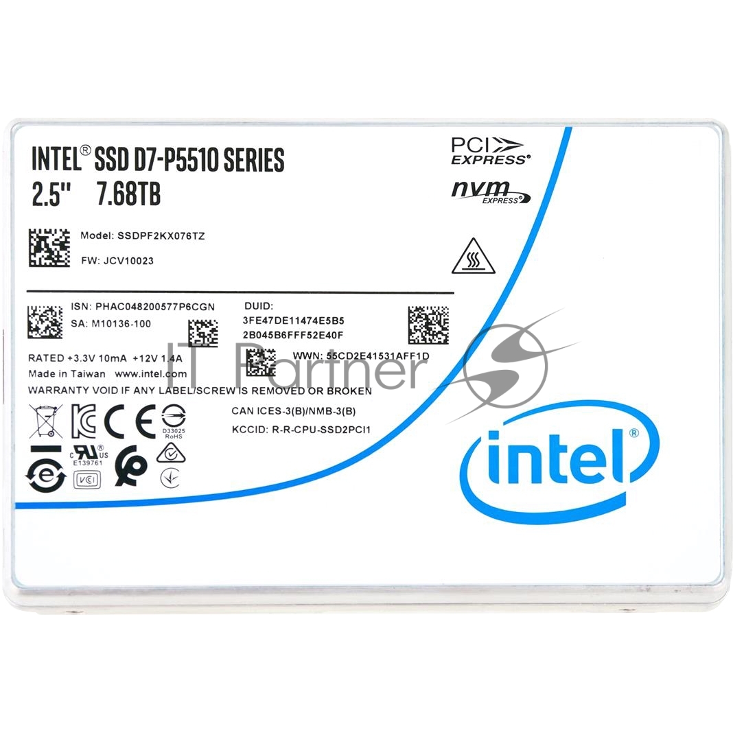 Накопитель SSD Intel D7-P5510, 7.5Tb, 2.5″, PCIe 4.0 x4, NVMe, U.2, R/W 7000/4194
