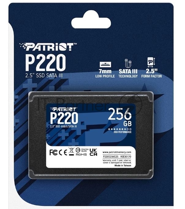 Накопитель SSD Patriot P220, 256GB, SATA-III, 2.5″, R/W 550/490