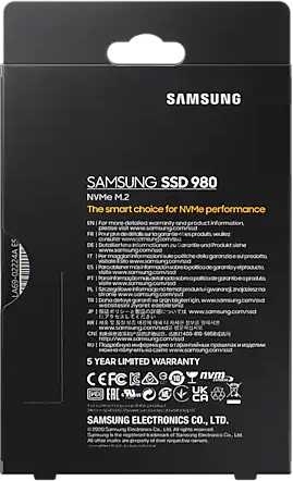 Накопитель SSD Samsung 980, 1000GB, PCIe 3.0 x4, M.2 2280, NVMe, R/W 3500/3000
