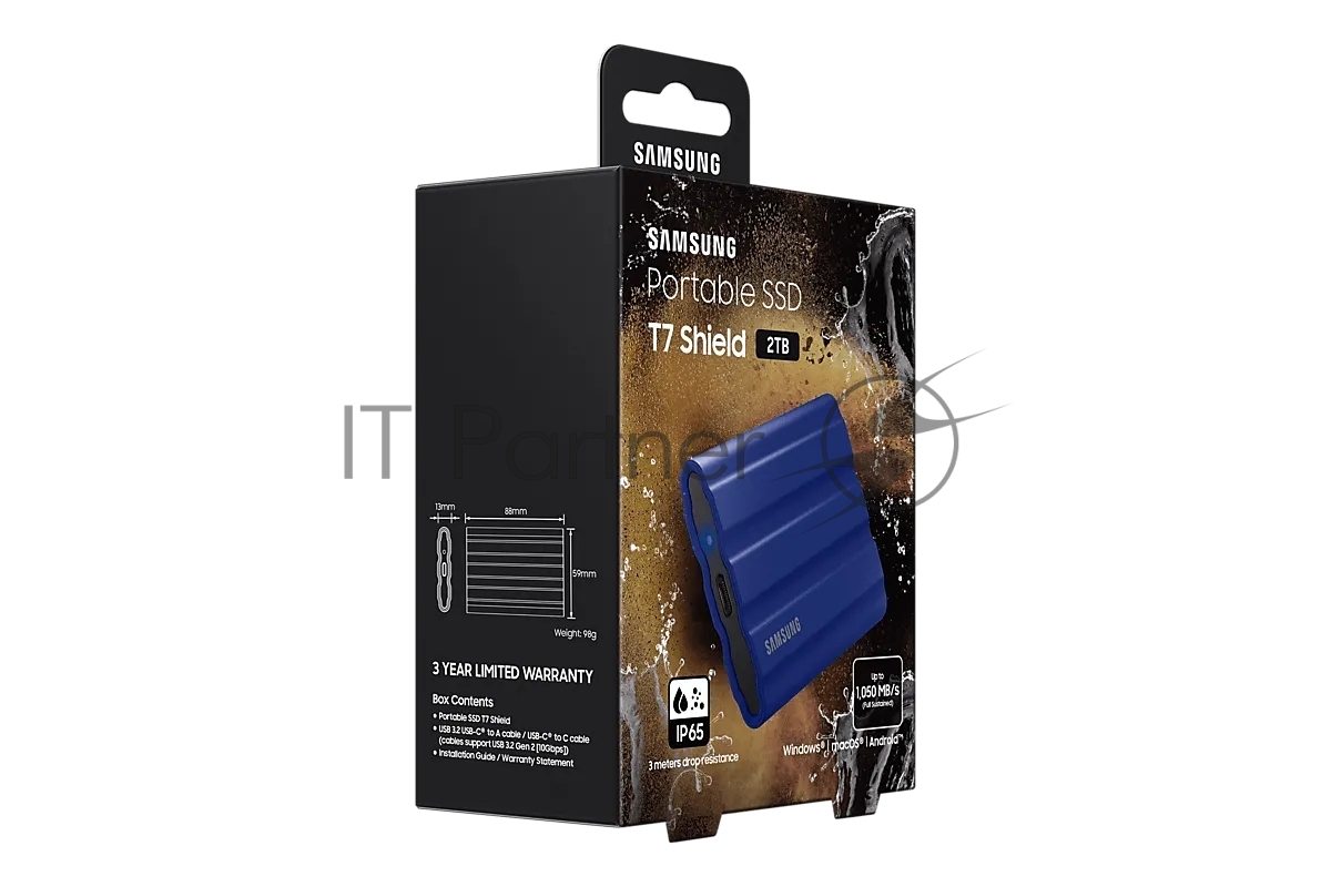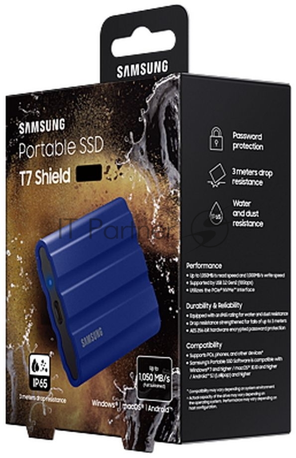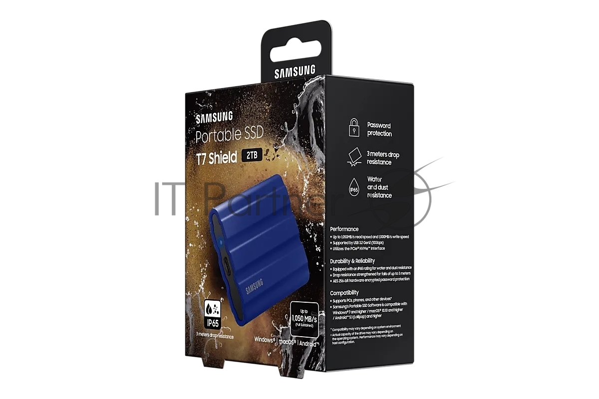 Накопитель SSD Samsung T7 Shield MU-PE1T0R/WW, USB3.2, 1ТБ, синий