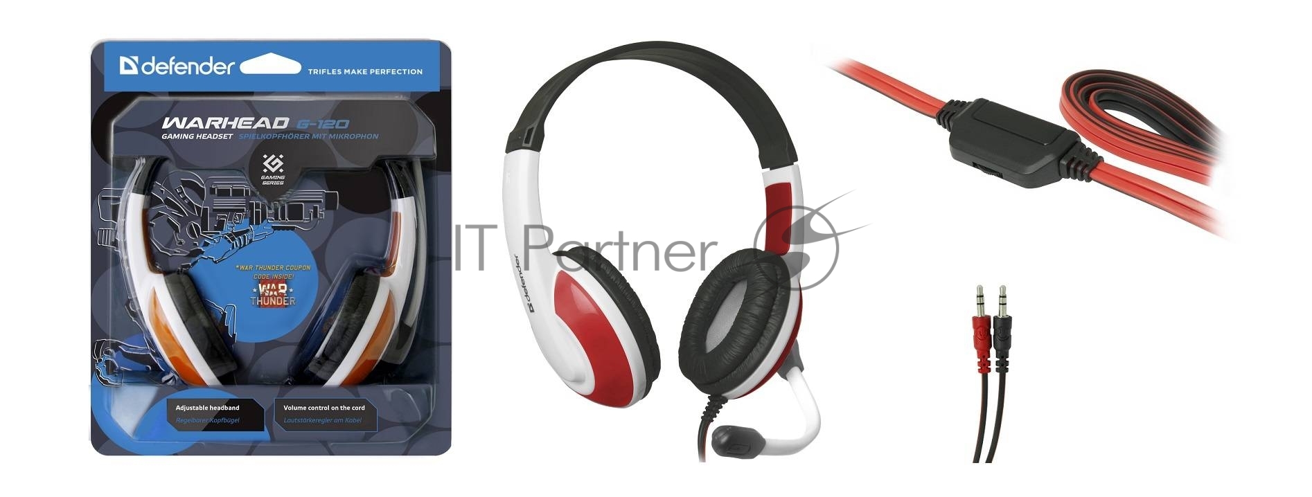 Наушники DEFENDER Warhead G-120 красный/белый кабель 2 м