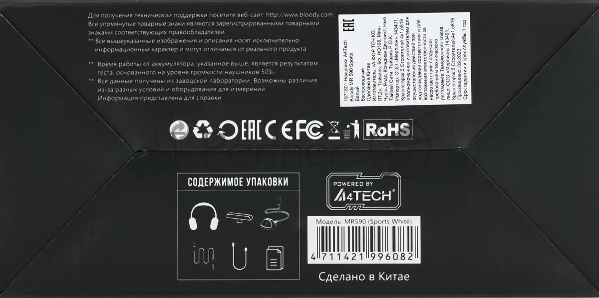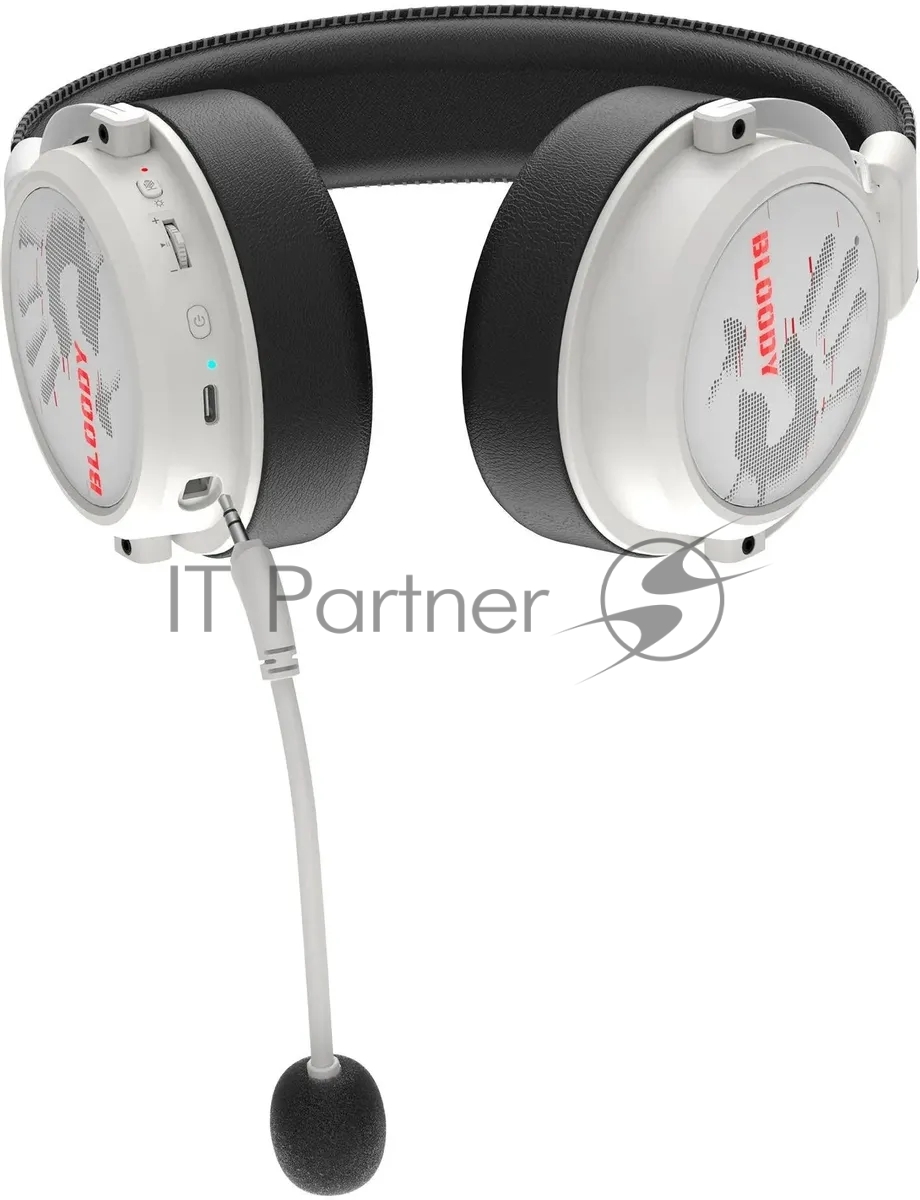 Наушники с микрофоном A4Tech Bloody MR590 Sports белый/черный 1.5м мониторные BT/Radio/3.5mm оголовье (MR590+ WIRED/SPORT WHITE)