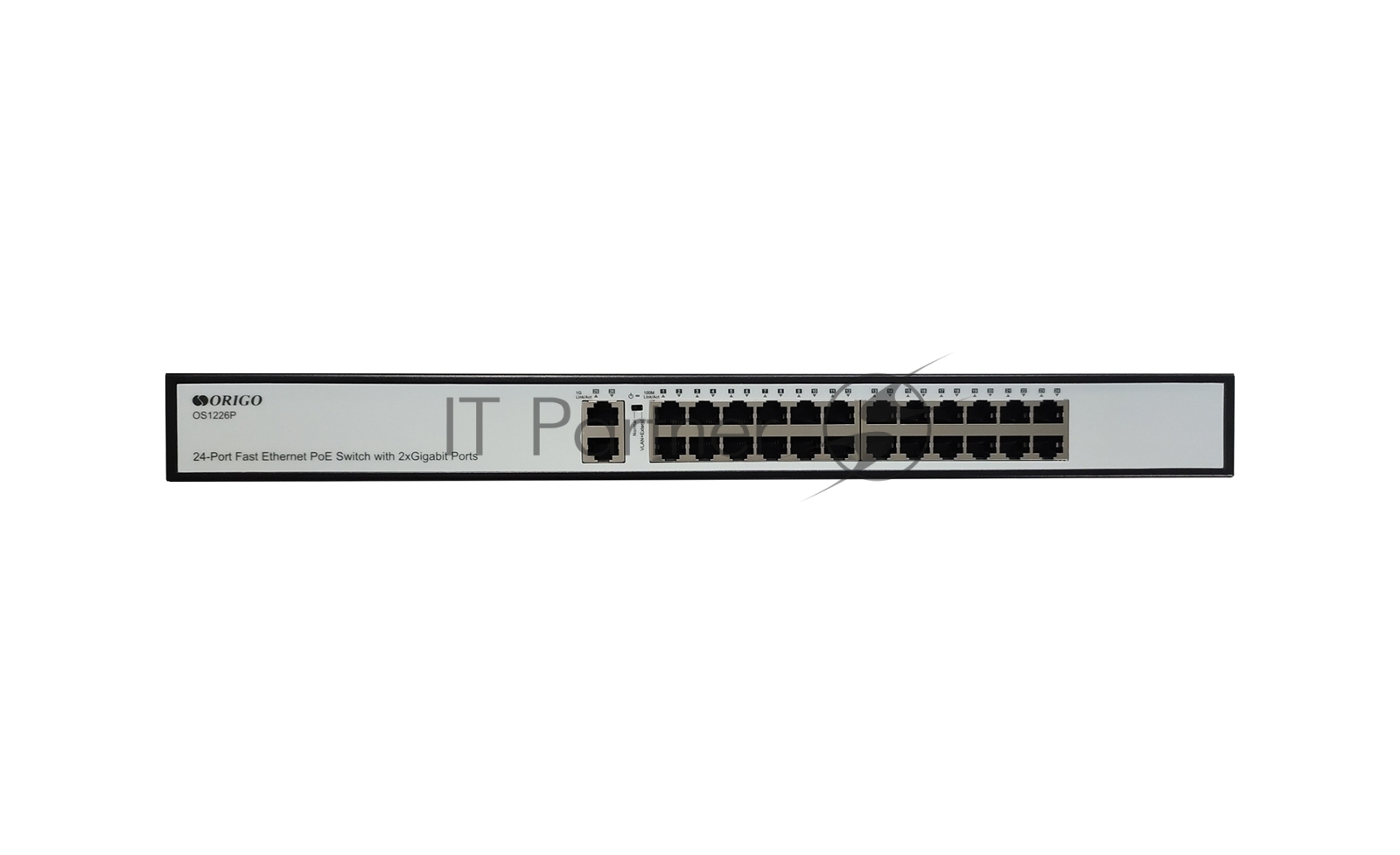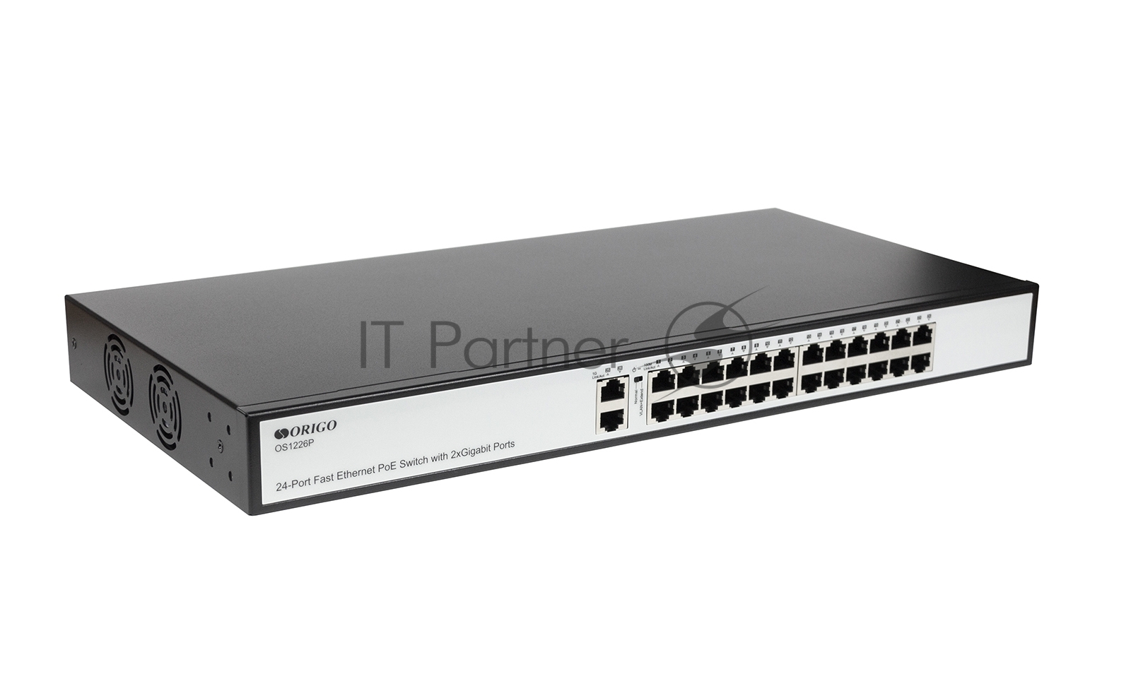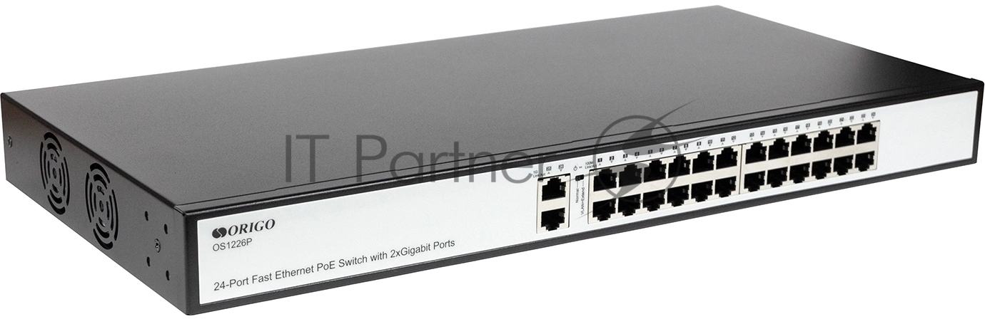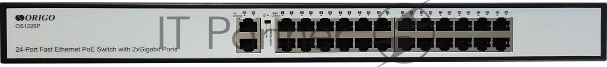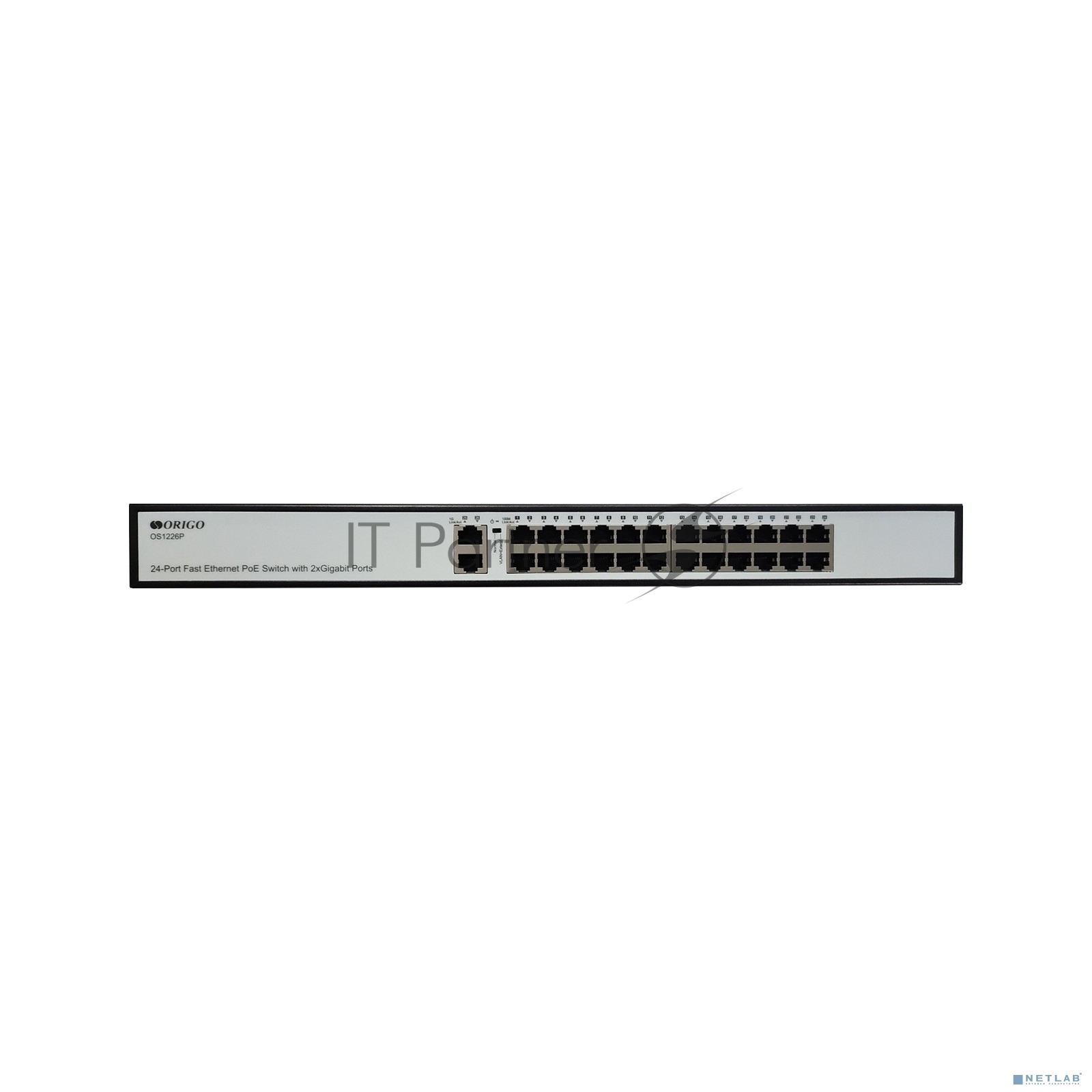 Неуправляемый PoE-коммутатор ORIGO OS1226P/285W/A1A 24x100Base-TX PoE+, 2x1000Base-T, PoE-бюджет 285 Вт, корпус металл