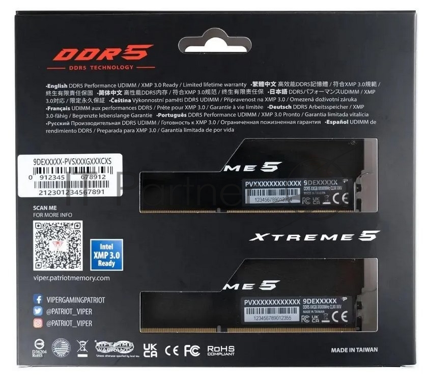 Оперативная память Patriot 32Gb DDR5 8200MHz (2*16Gb) Viper Xtreme 5 Gaming RGB черный