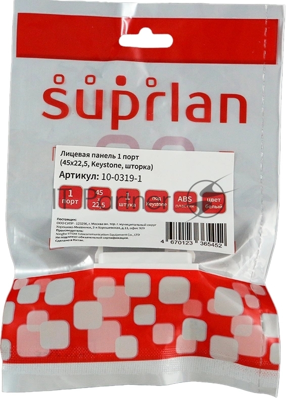 Панель Suprlan 10-0319-1, лицевая со шторкой 22.5×45, 1xKeystone ABS пластик, белый