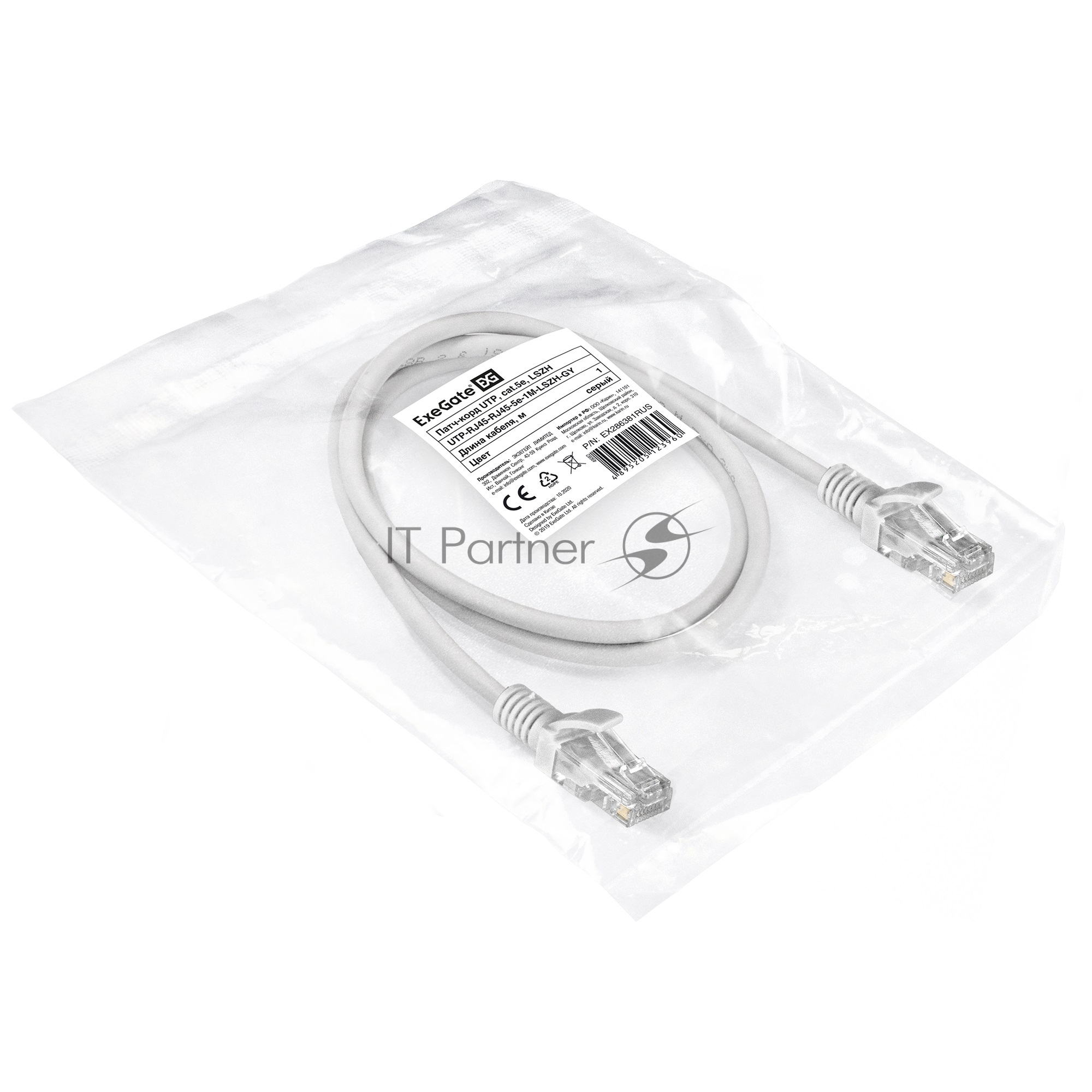 Патч-корд ExeGate EX286381RUS UTP-RJ45-RJ45-5e-1M-LSZH-GY, UTP, cat.5e, LSZH, 1м, серый
