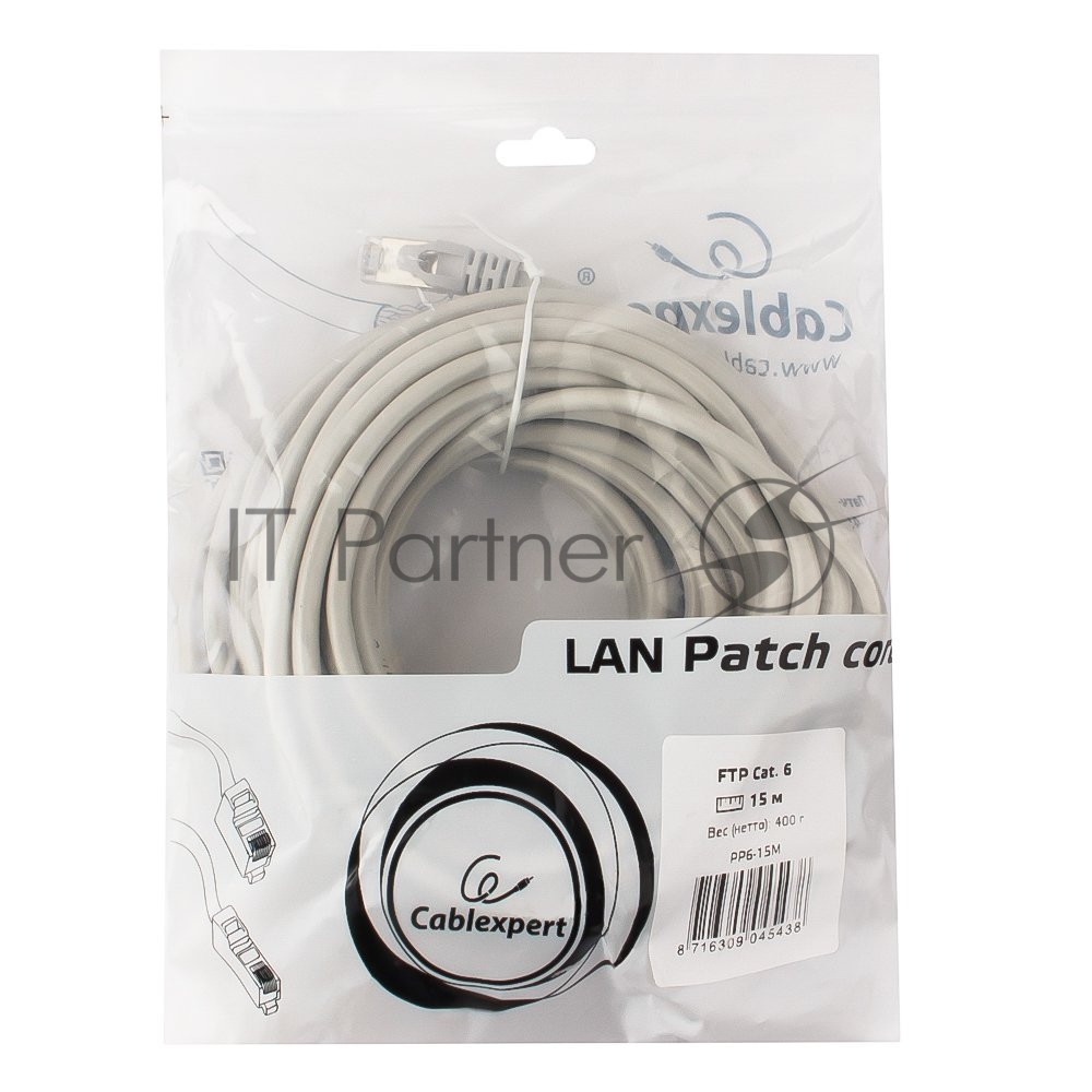 Патч-корд FTP Cablexpert кат.6, 15м, литой, многожильный (серый)