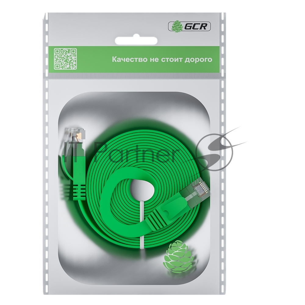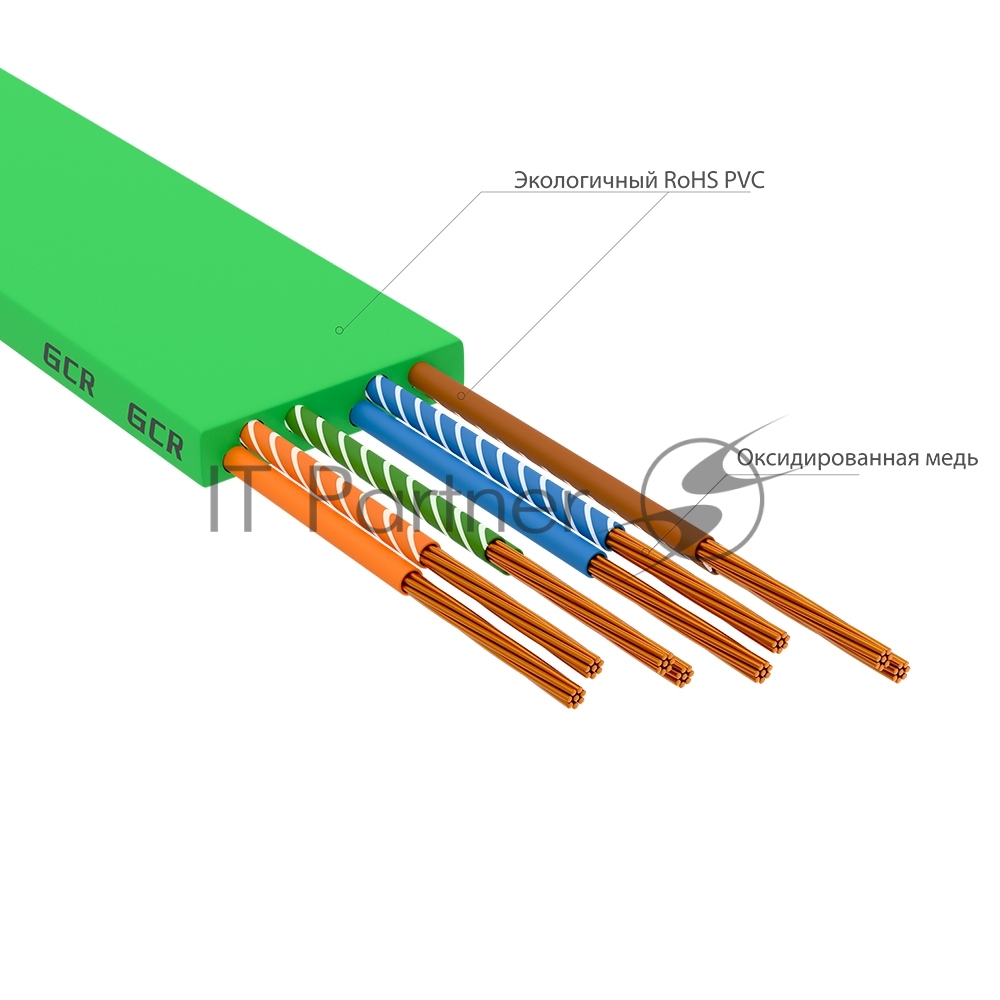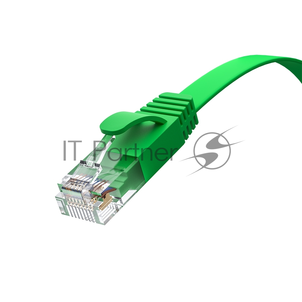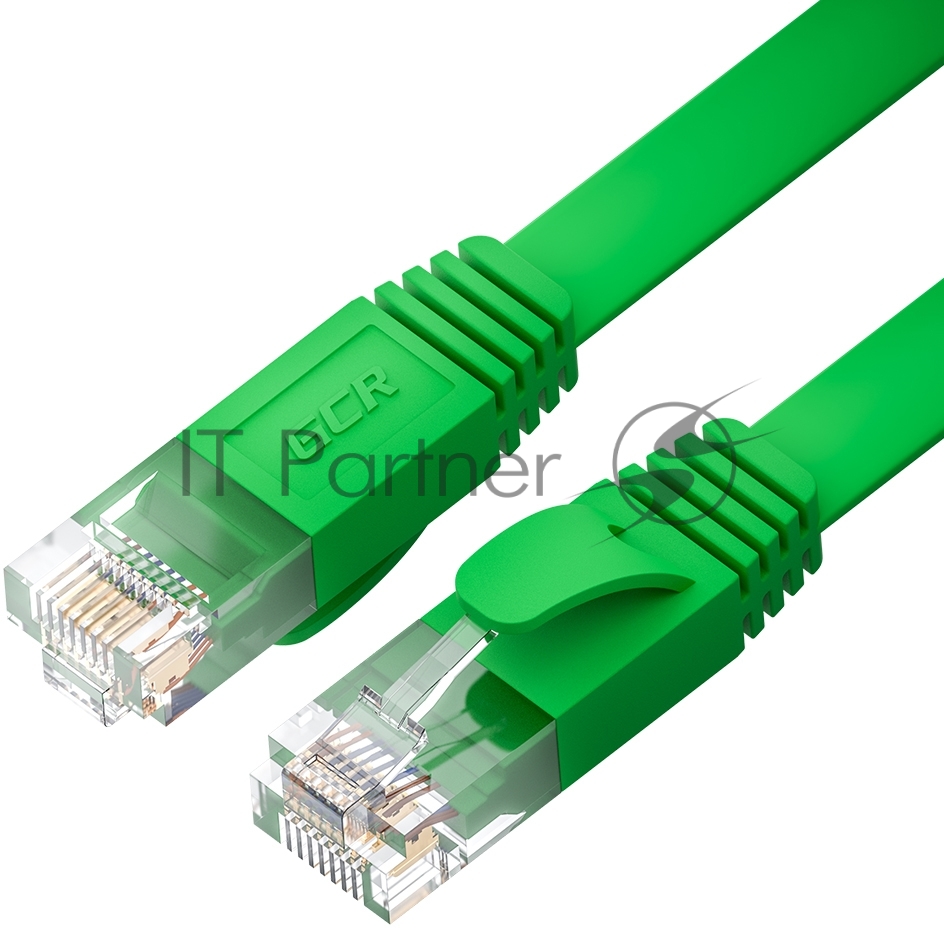 Патч-корд GCR PROF плоский прямой 1.5m, UTP медь кат.6, зеленый, 30 AWG, ethernet high speed 10 Гбит/с, RJ45, T568B, GCR-52837