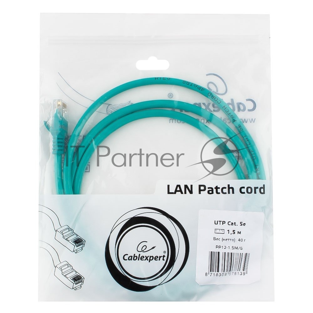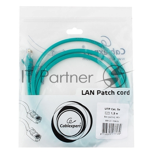 Патч-корд UTP Cablexpert кат.5e, 1м, литой, многожильный (зеленый)