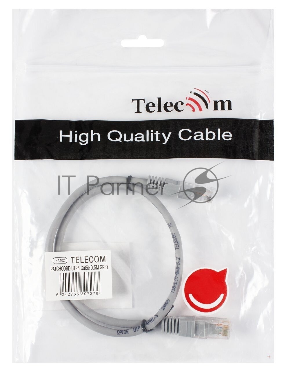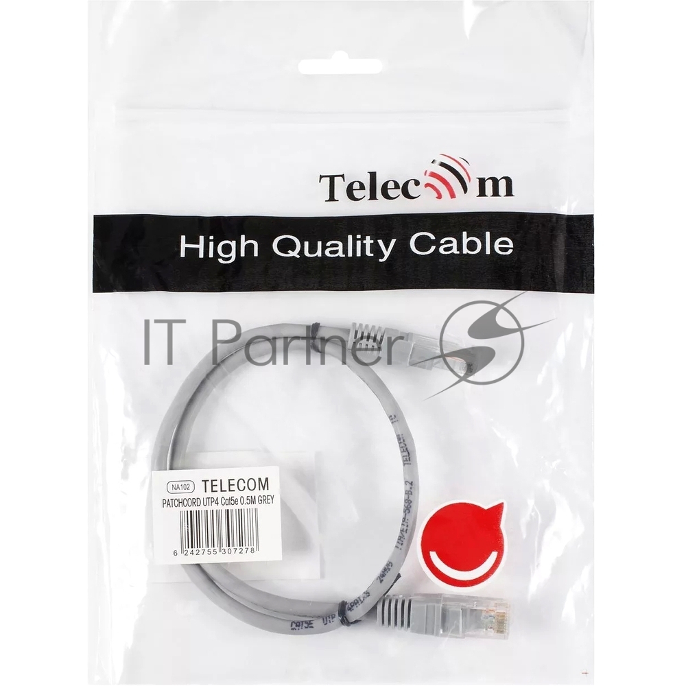 Патчкорд 0.5м «Telecom» UTP кат.5е RJ45, литой, серый, NA102—0.5M